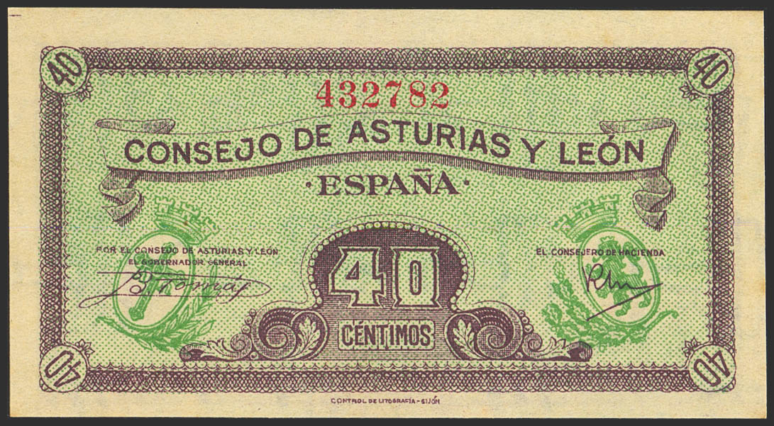 40 Céntimos. 1937. Asturias y León. Sin serie. (Edifil 2023: 395). Apresto original. SC.