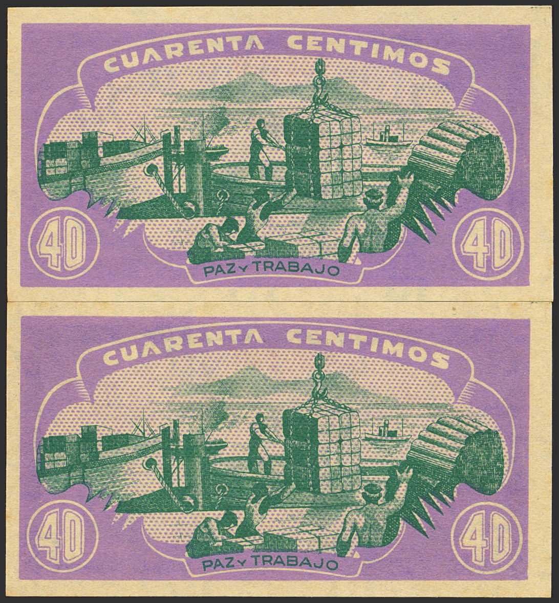 40 Céntimos. 1937. Asturias y León. Pareja correlativa. Sin serie. (Edifil 2023: 395). Apresto original. SC.
