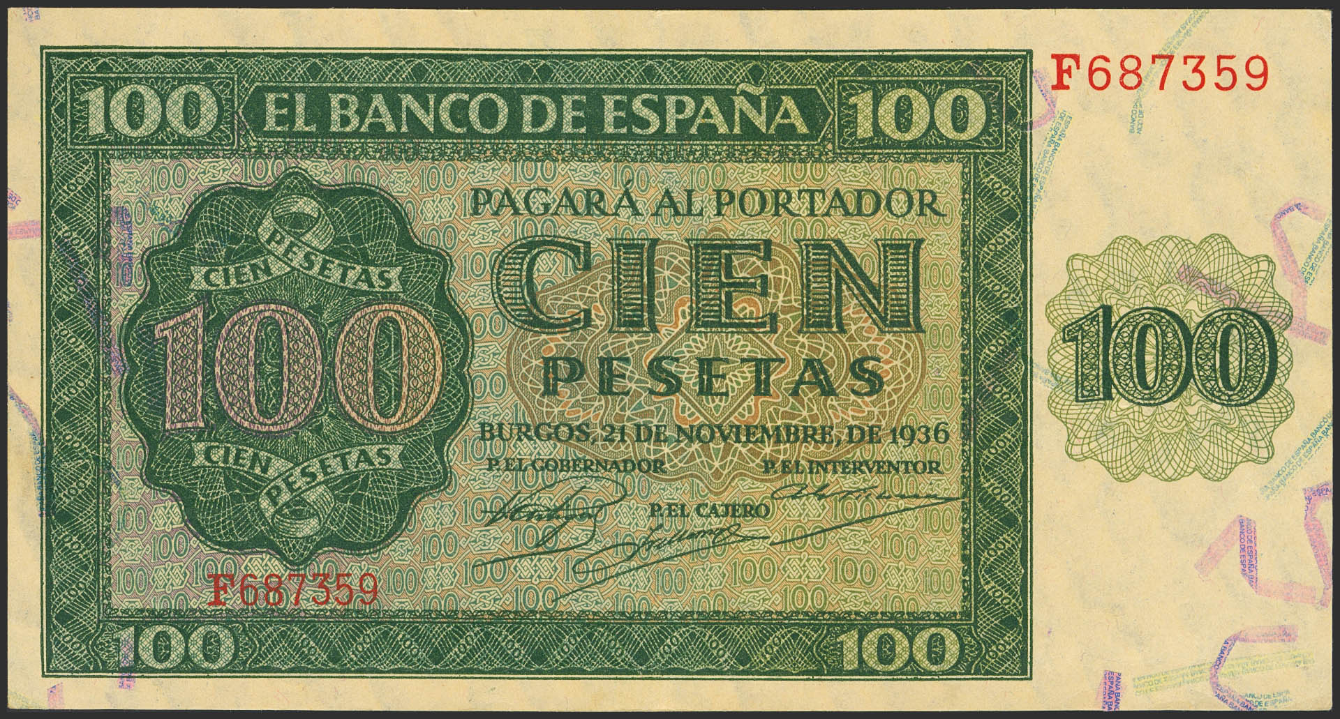 100 Pesetas. 21 de Noviembre de 1936. Serie F. (Edifil 2023: 421a). Conserva gran parte de su apresto original. EBC+++.