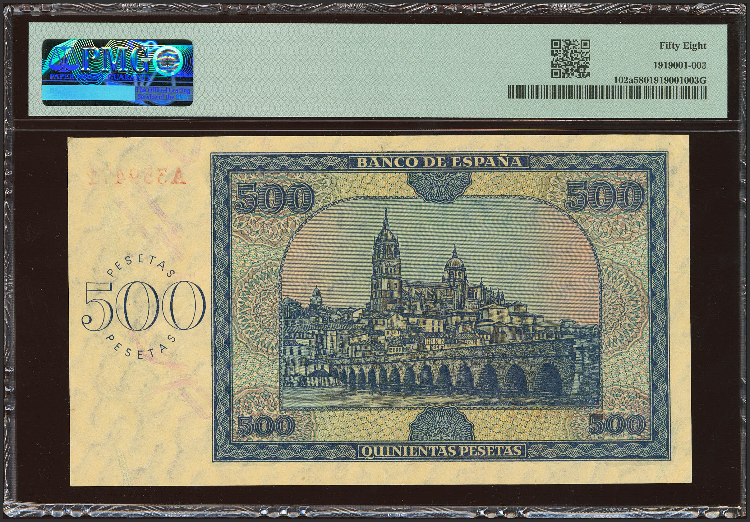 500 Pesetas. 21 de Noviembre de 1936. Serie A. (Edifil 2023: 422, Pick: 102a). Inusual. EBC++. Encapsulado PMG58.
