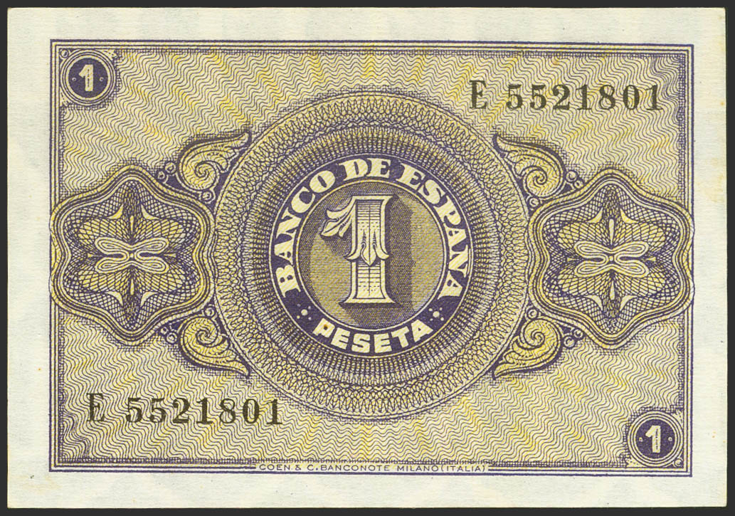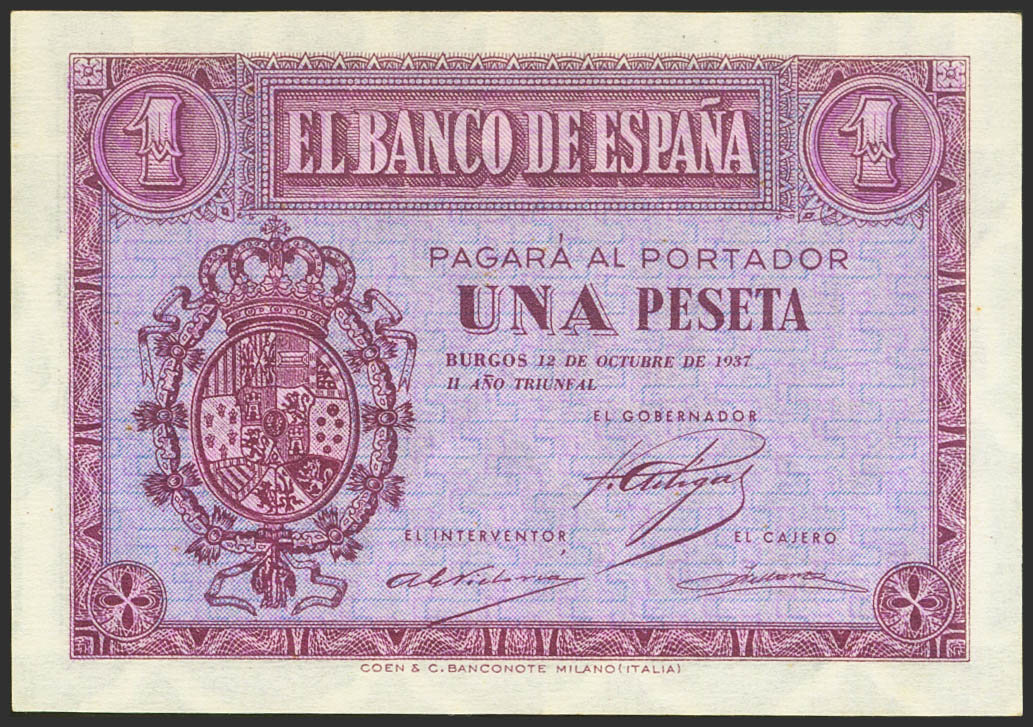 1 Peseta. 12 de Octubre de 1937. Serie E. (Edifil 2021: 425a). Conserva todo su apresto original. SC.