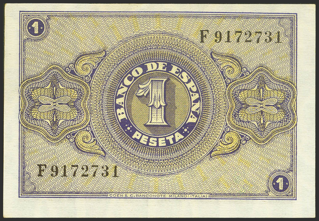 1 Peseta. 30 de Abril de 1938. Serie F. (Edifil 2021: 428a). Apresto original. SC.