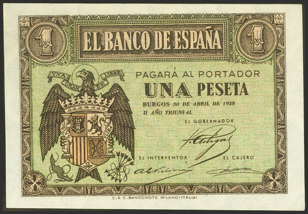 1 Peseta. 30 de Abril de 1938. Serie H. (Edifil 2021: 428a). Apresto original. SC.