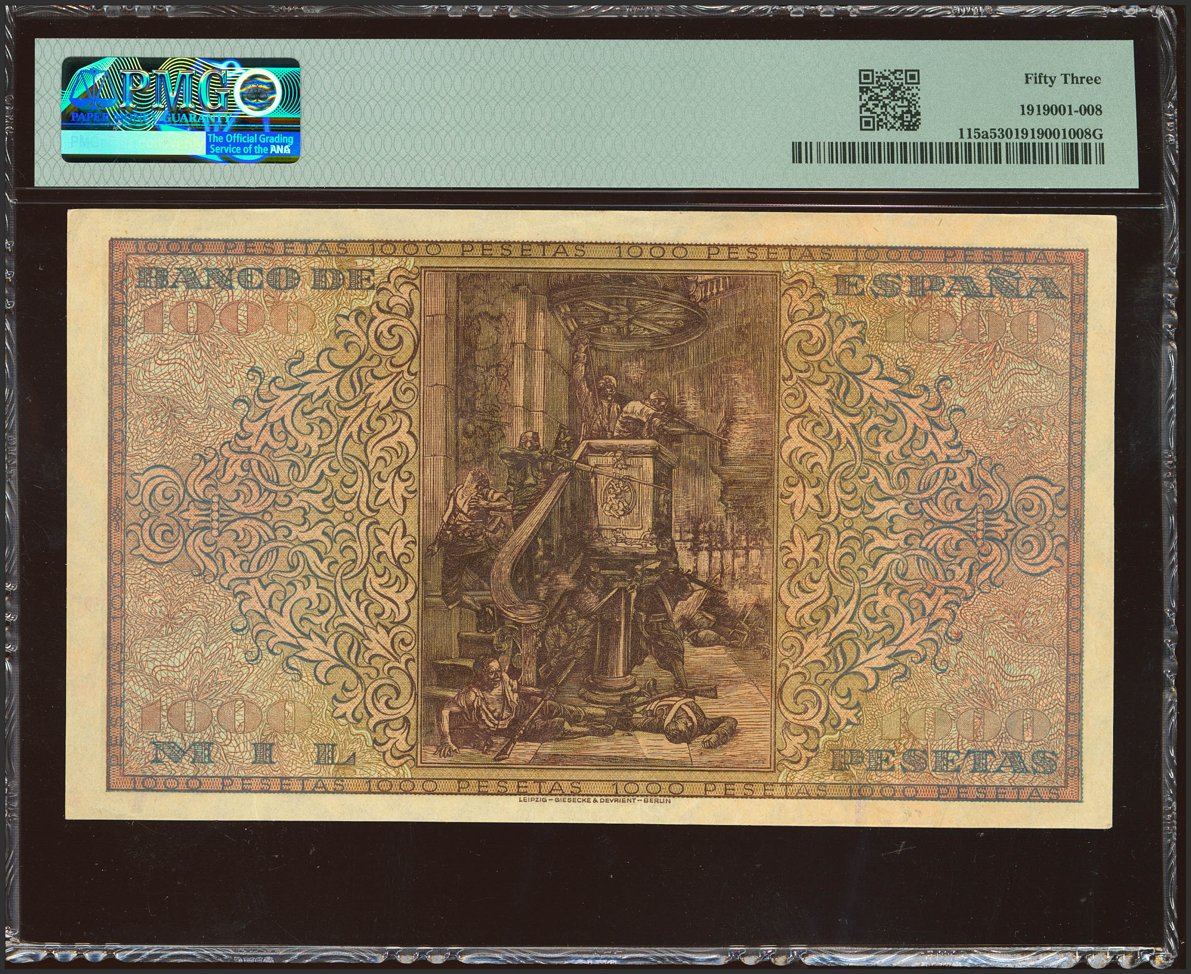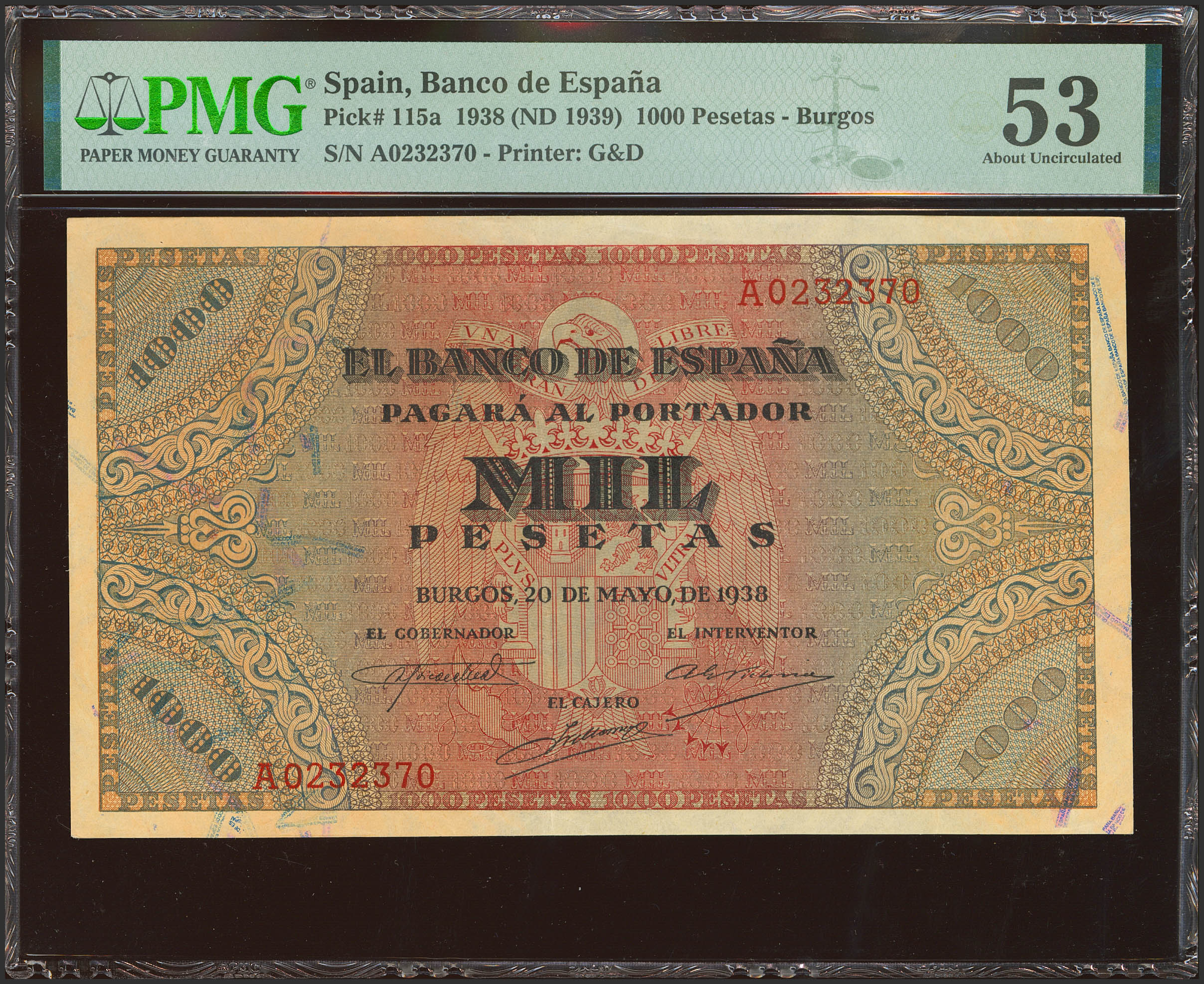 1000 Pesetas. 20 de Mayo de 1938. Serie A. (Edifil 2023: 434, Pick: 115a). Inusual en esta calidad. EBC. Encapsulado PMG53.