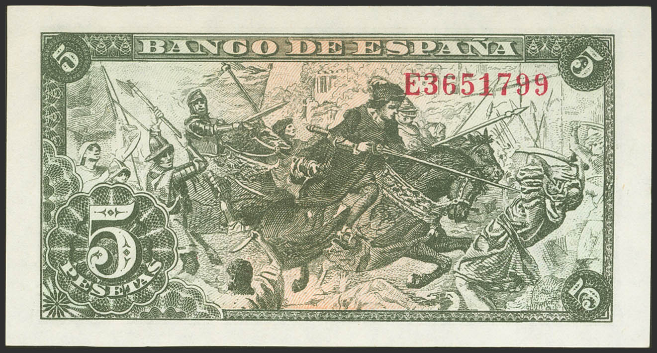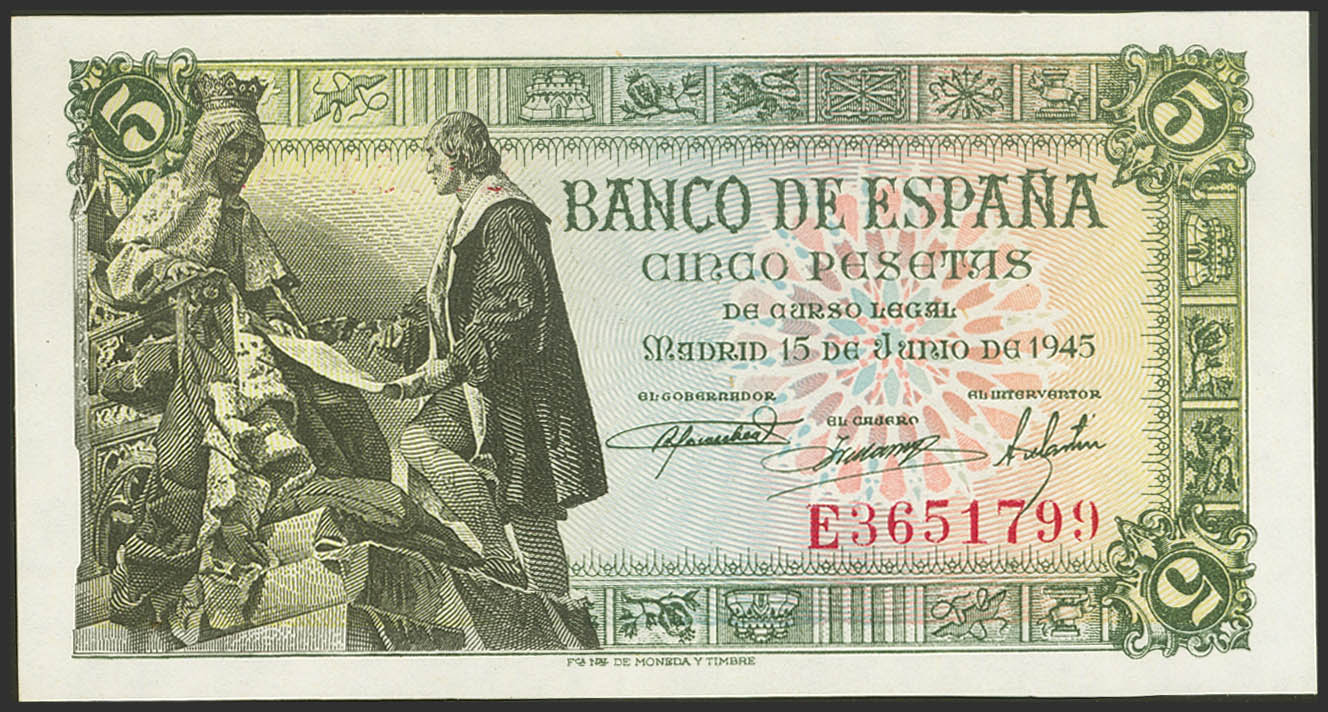 5 Pesetas. 15 de Julio de 1945. Serie E. (Edifil 2023: 449a). Apresto orignal. SC.