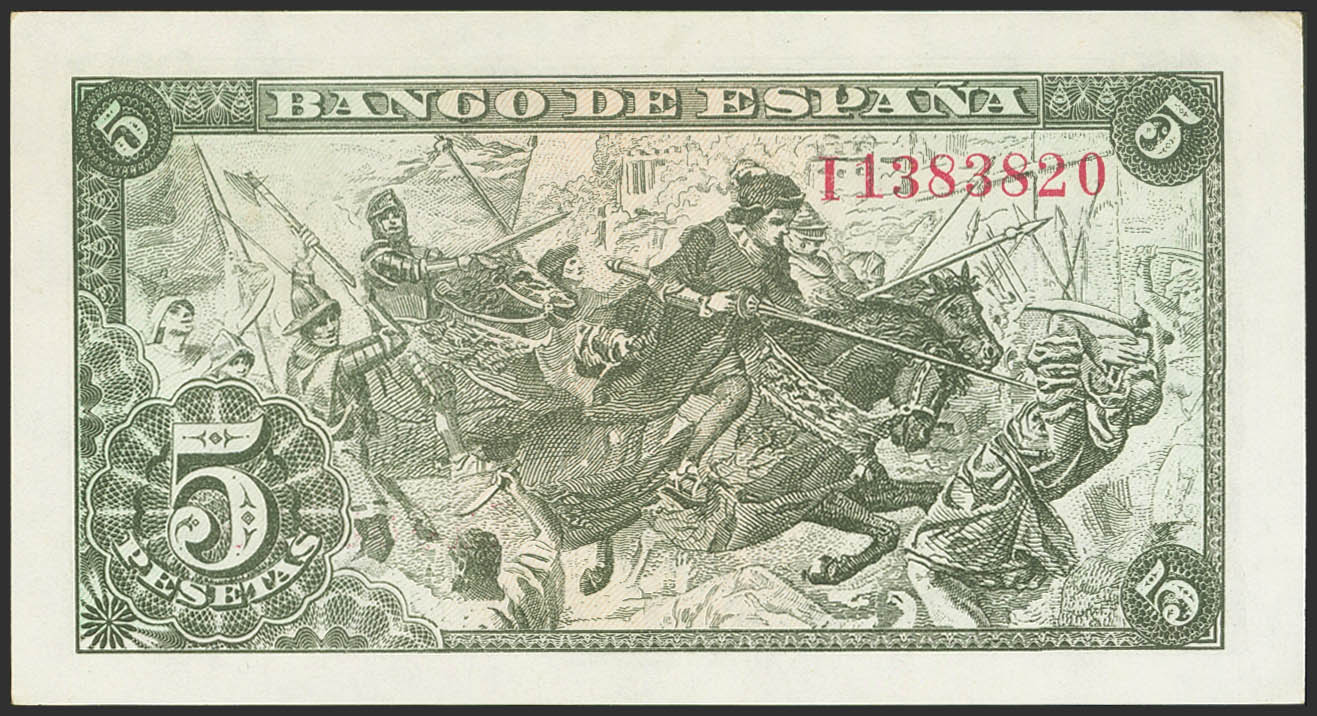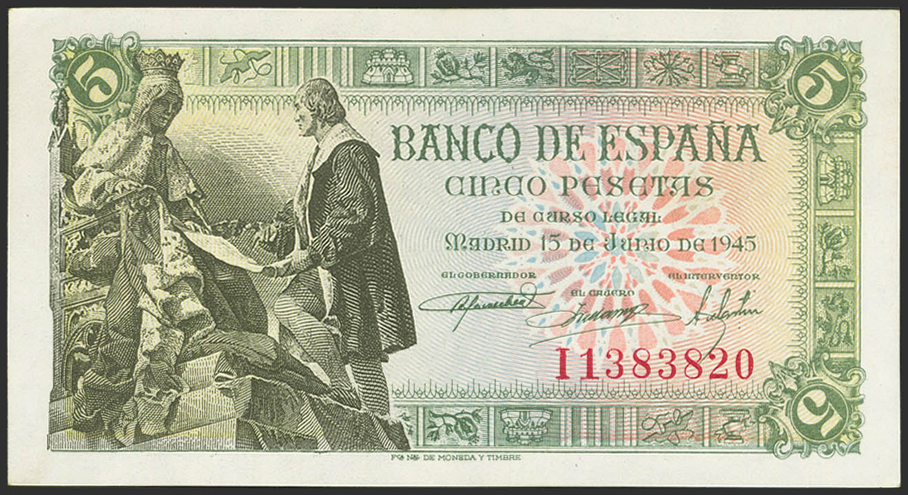 5 Pesetas. 15 de Julio de 1945. Serie I. (Edifil 2023: 449a). Apresto orignal. SC.