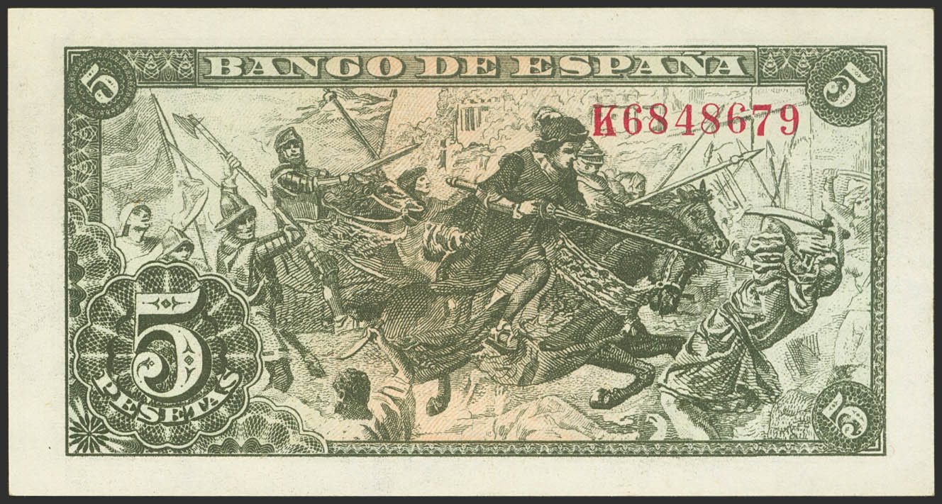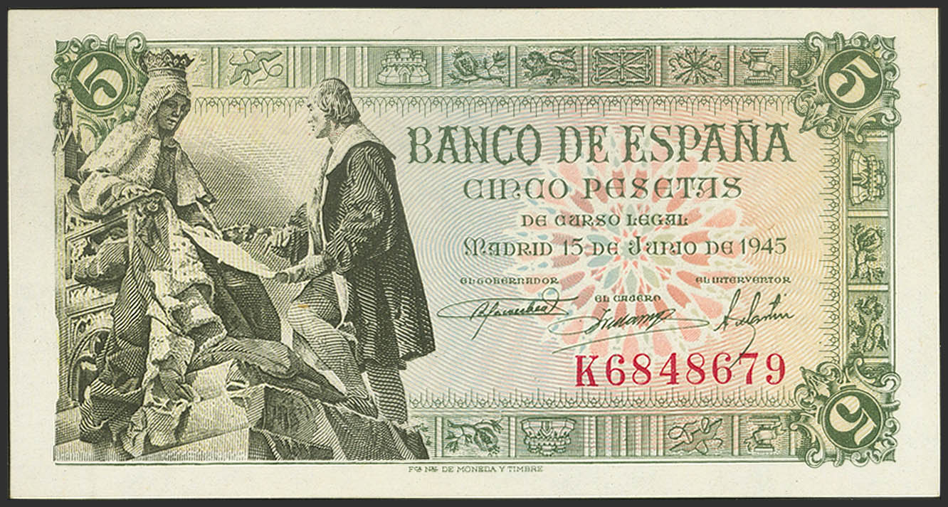 5 Pesetas. 15 de Julio de 1945. Serie K. (Edifil 2023: 449a). Apresto orignal. SC.
