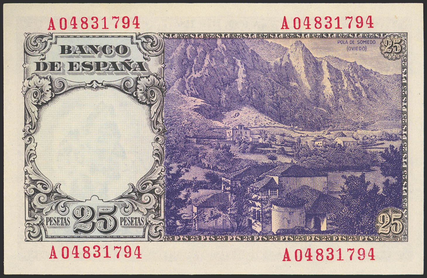 25 Pesetas. 19 de Febrero de 1946. Serie A. (Edifil 2023: 450a). Apresto original. EBC++.
