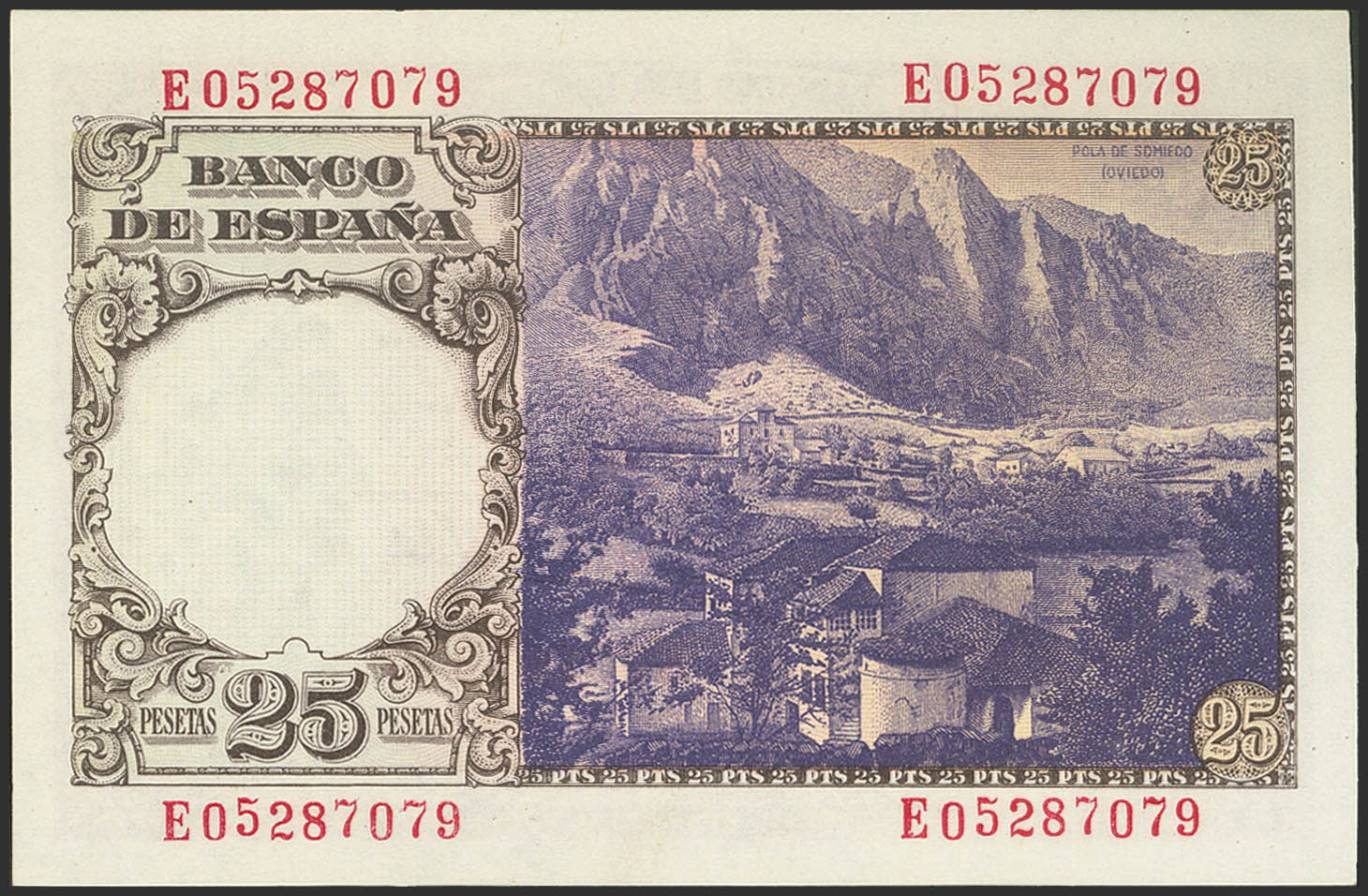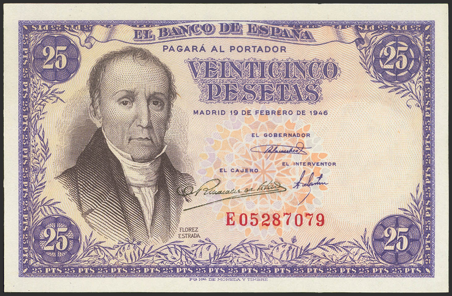 25 Pesetas. 19 de Febrero de 1946. Serie E. (Edifil 2023: 450a). Apresto original. SC.