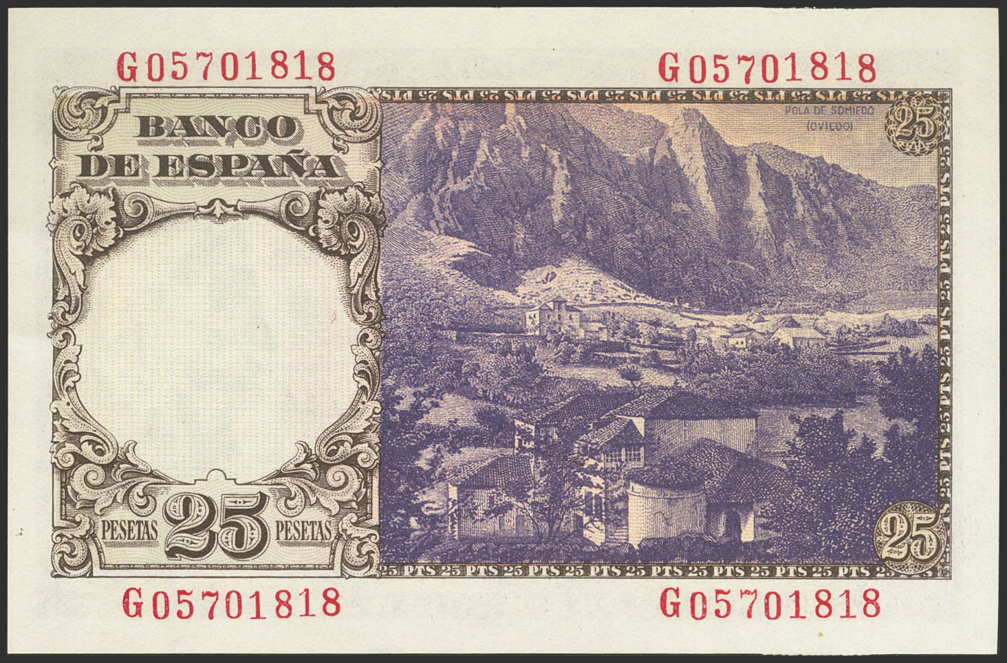 25 Pesetas. 19 de Febrero de 1946. Serie G. (Edifil 2021: 450a). Apresto original. SC.