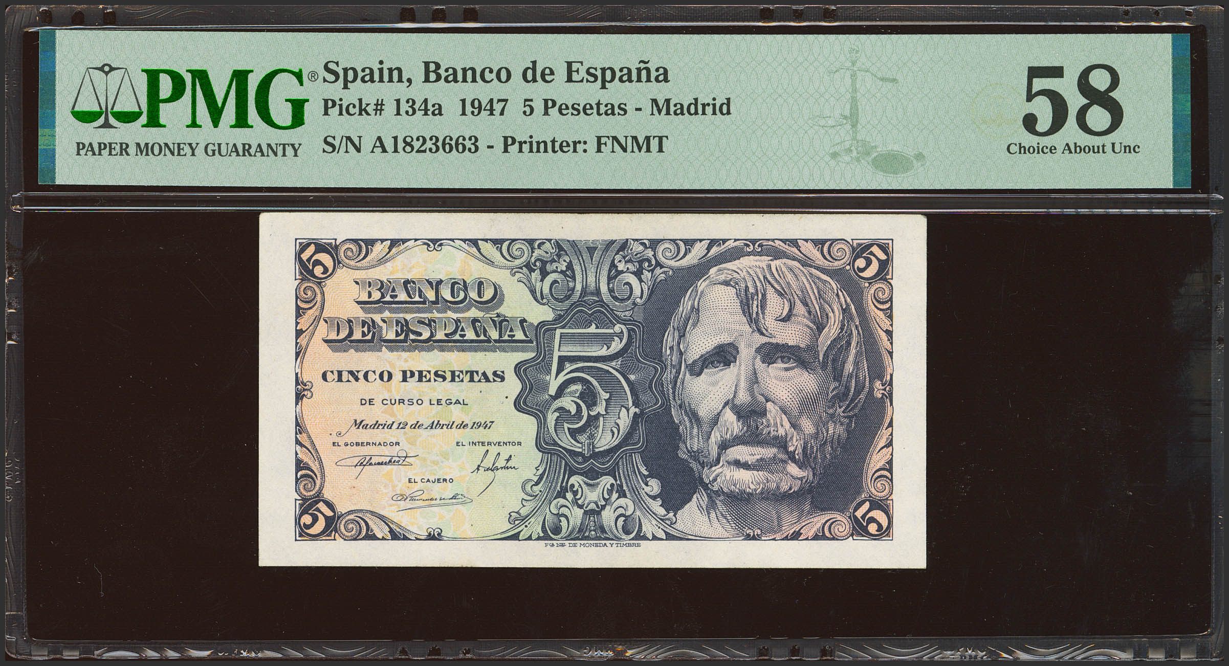 5 Pesetas. 12 de Abril de 1947. Serie A. (Edifil 2023: 454a, Pick: 134a). EBC++. Encapsulado PMG58.