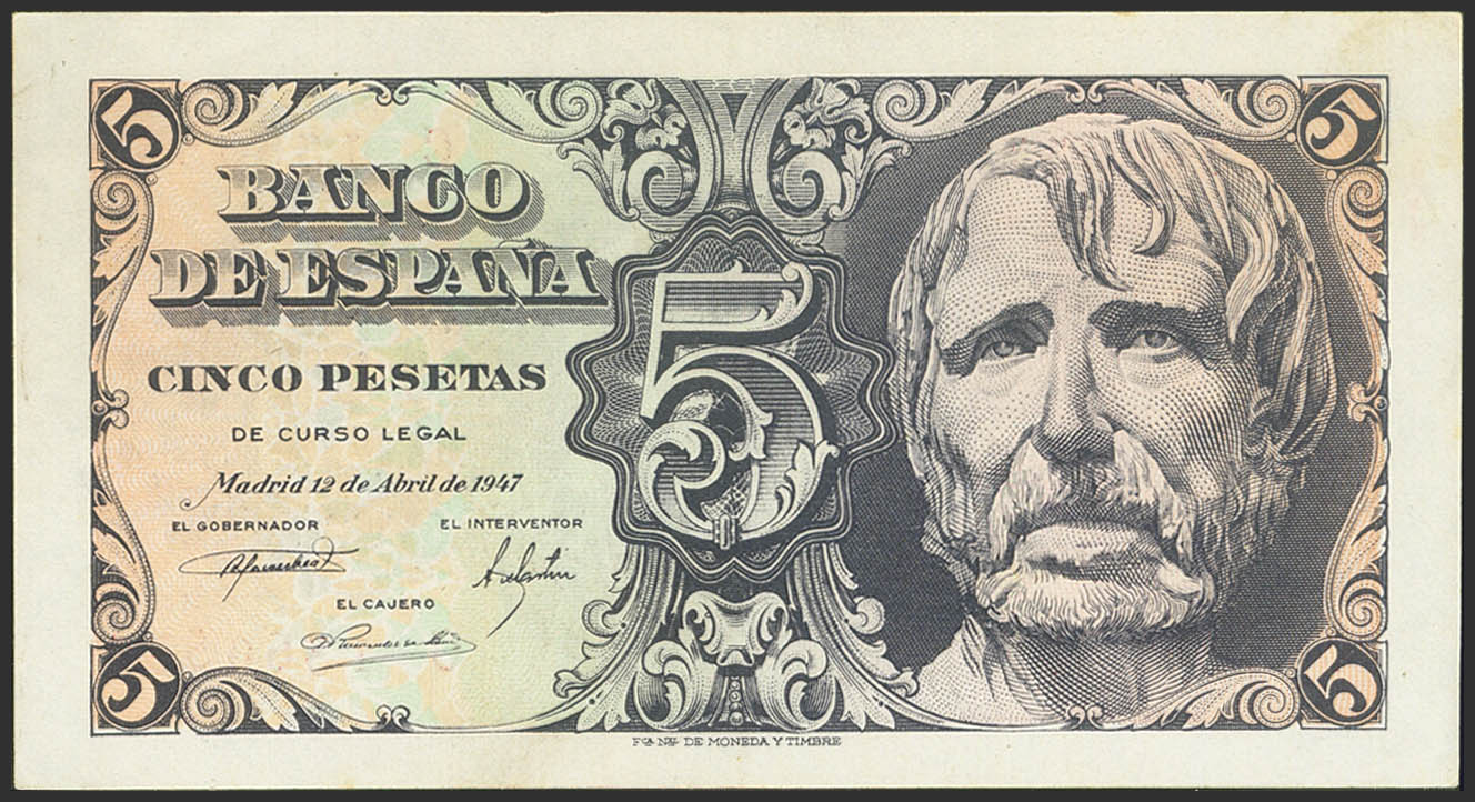 5 Pesetas. 12 de Abril de 1947. Serie C. (Edifil 2023: 454a). Apresto original. SC-.