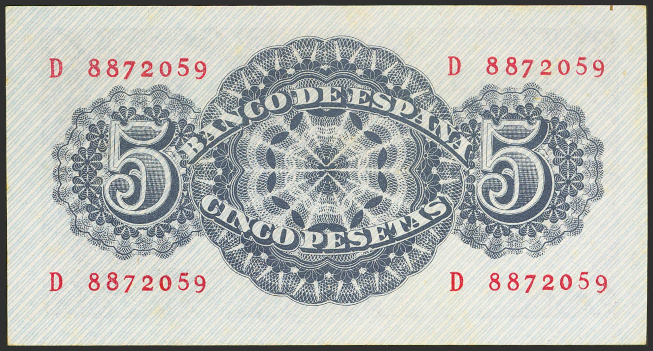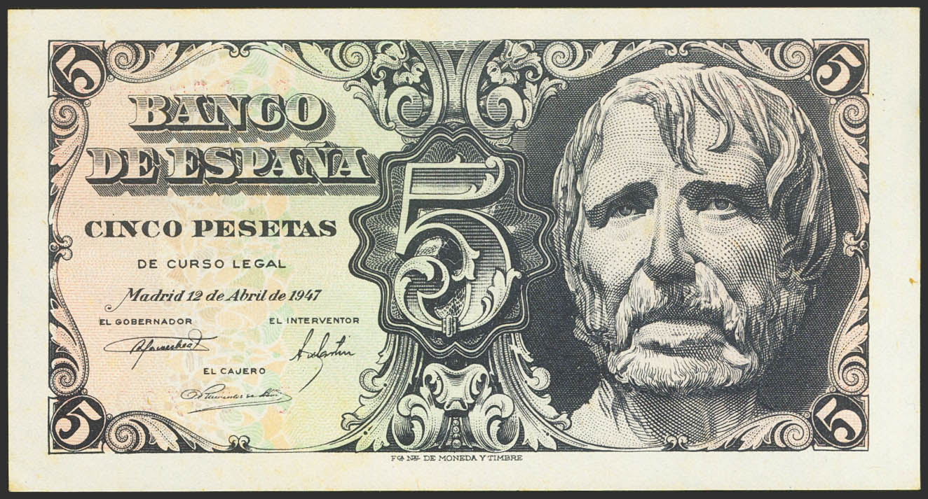5 Pesetas. 12 de Abril de 1947. Serie D. (Edifil 2021: 454a). Conserva parte del apresto original. SC-.