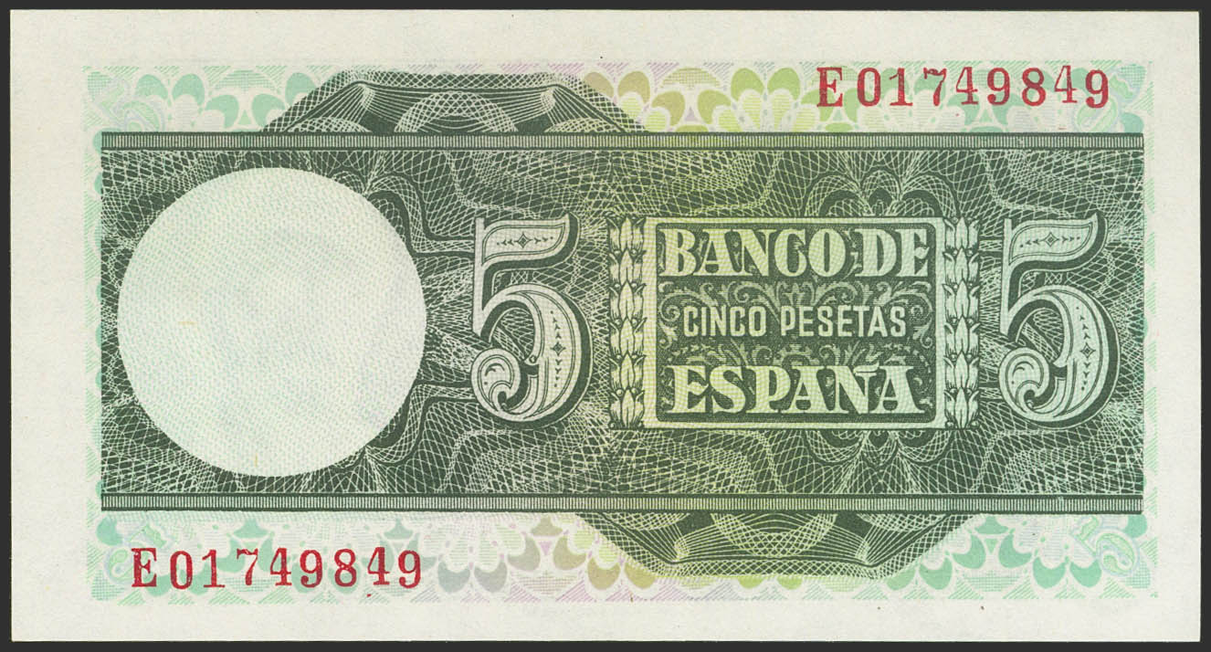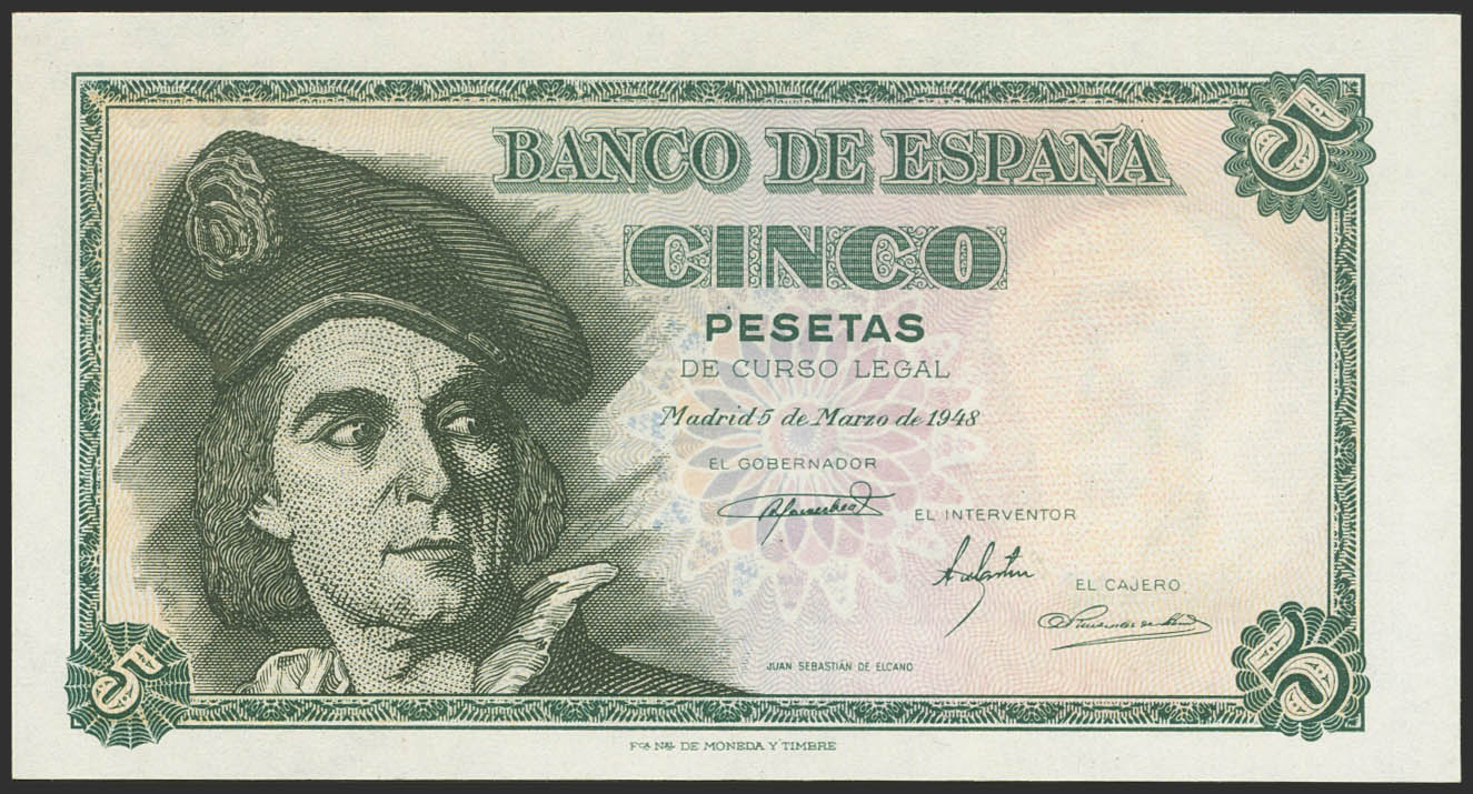 5 Pesetas. 5 de Marzo de 1948. Serie E. (Edifil 2023: 455a). Apresto original. SC.