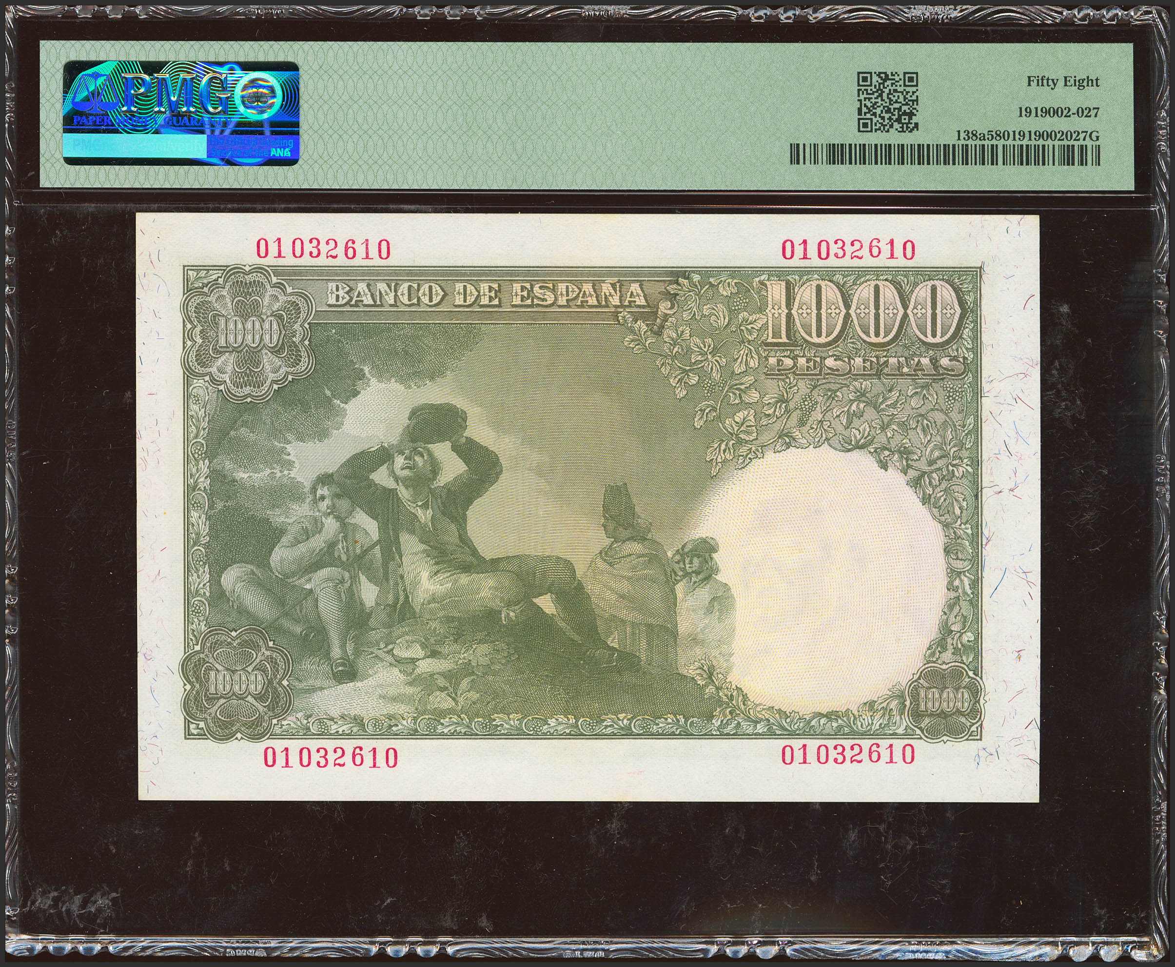 1000 Pesetas. 4 de Noviembre de 1949. Sin serie. (Edifil 2021: 458). EBC++. Encapsulado PMG58.
