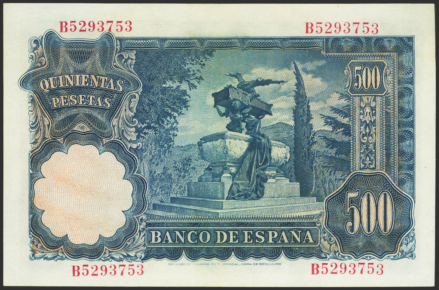 500 Pesetas. 15 de Noviembre de 1951. Serie B. (Edifil 2023: 460a). Conserva parte de su apresto original. EBC.