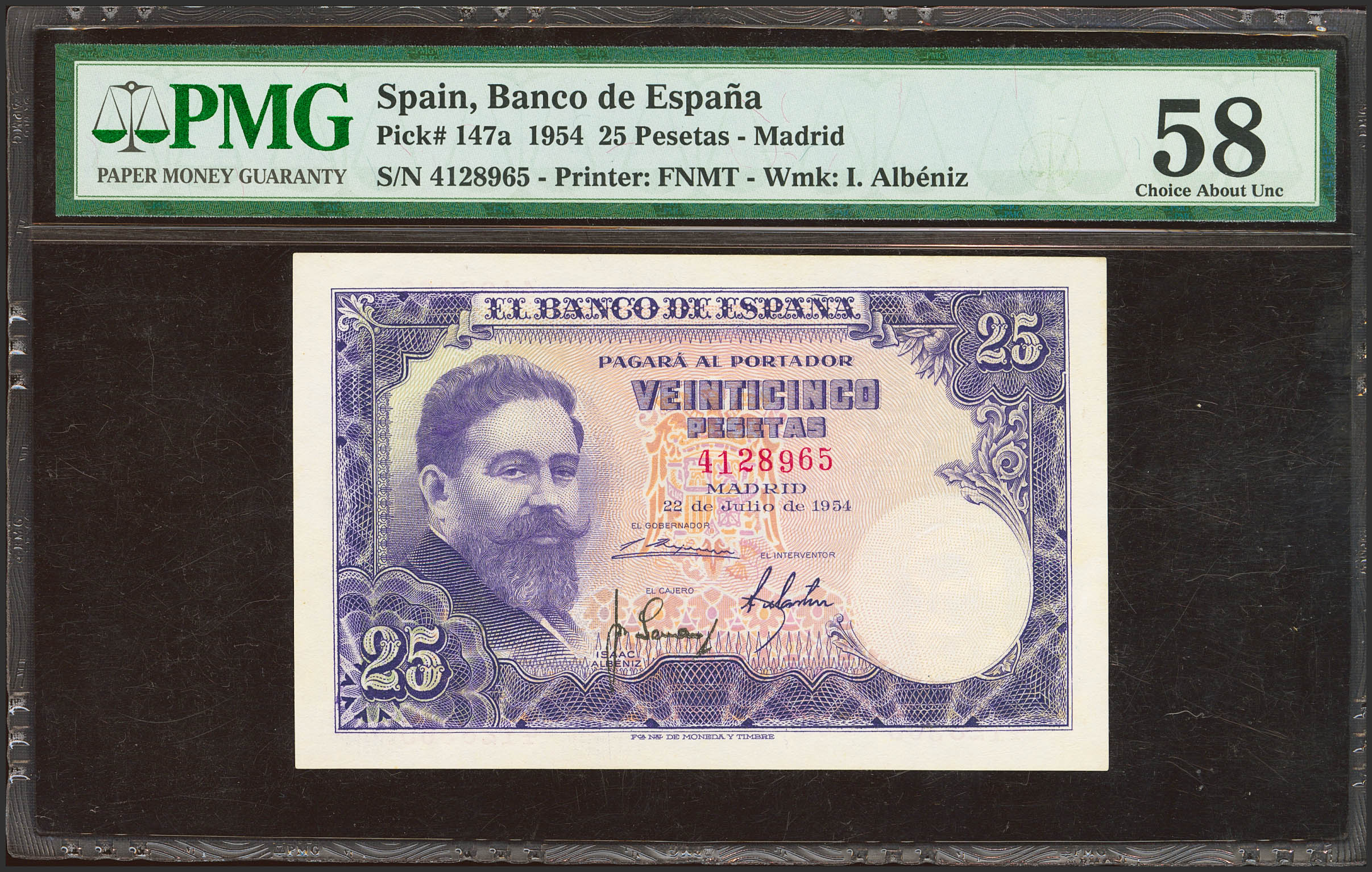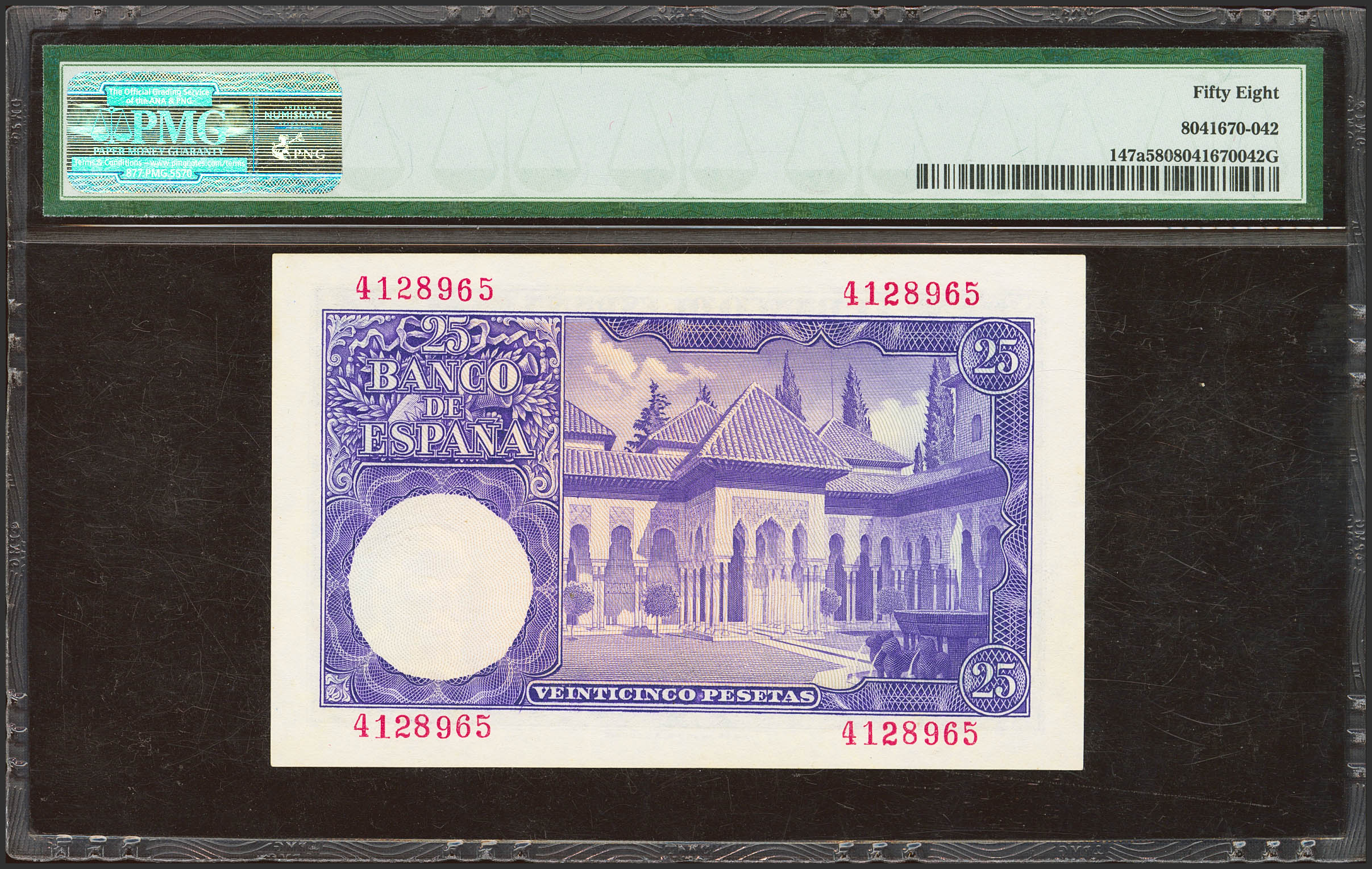 25 Pesetas. 22 de Julio de 1953. Sin serie. (Edifil 2021: 467, Pick: 147a). EBC++. Encapsulado PMG58.