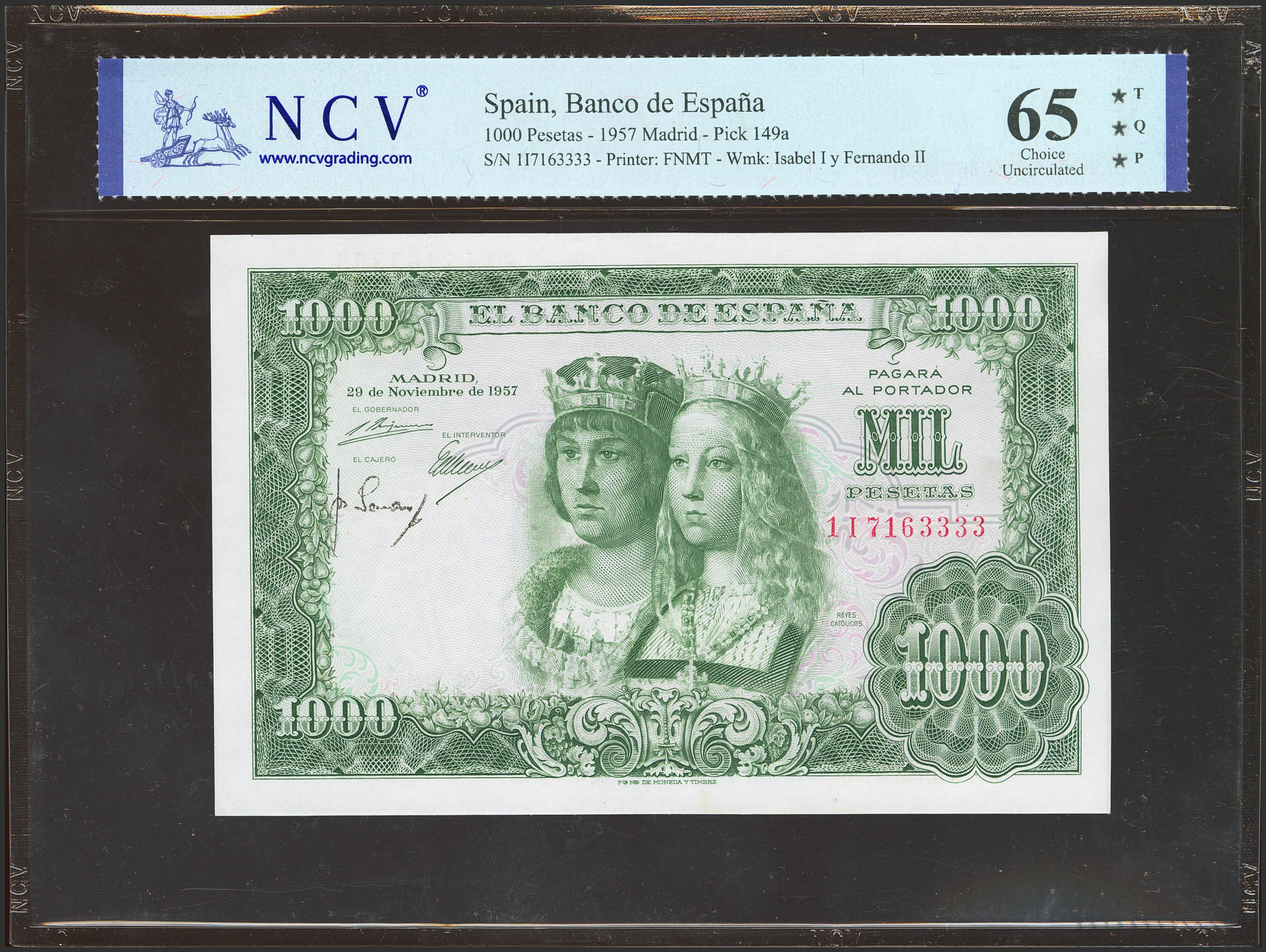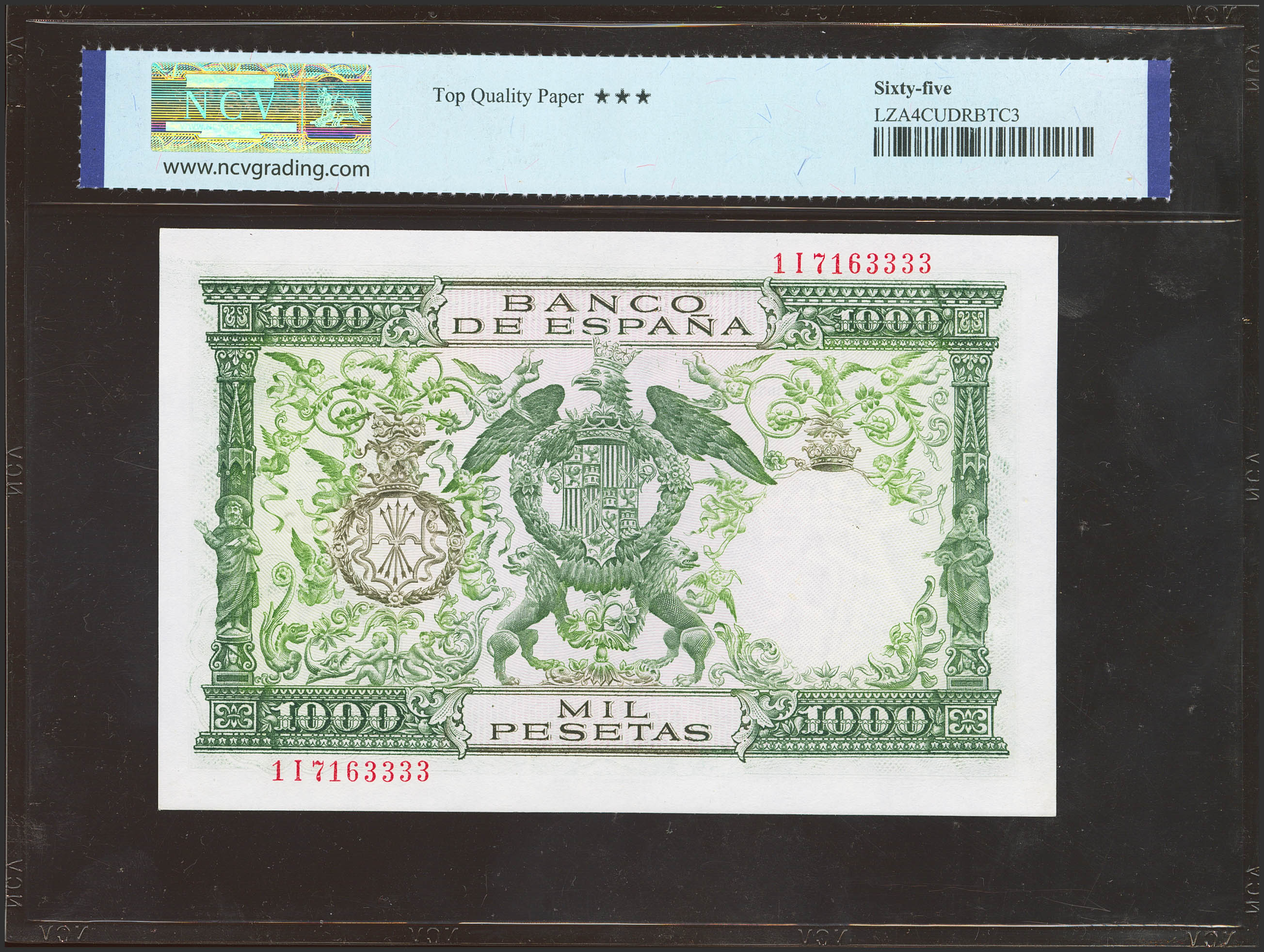1000 Pesetas. 29 de Noviembre de 1957. Serie 1I. (Edifil 2023: 469b, Pick: 149a). SC. Encapsulado NCV65TQP.
