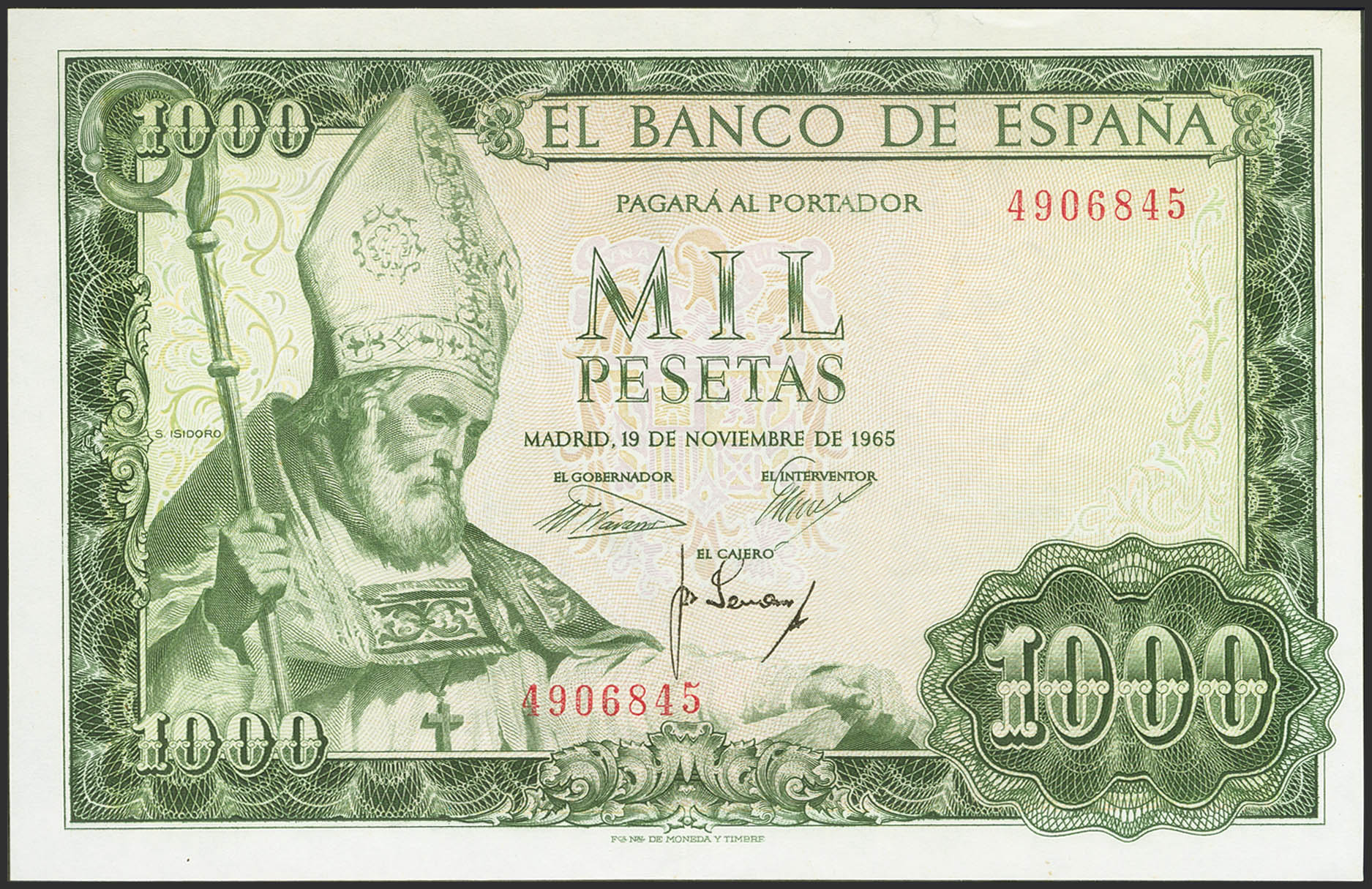 1000 Pesetas. 19 de Noviembre de 1965. Sin serie. (Edifil 2021: 471). Conserva gran parte del apresto original. EBC+.