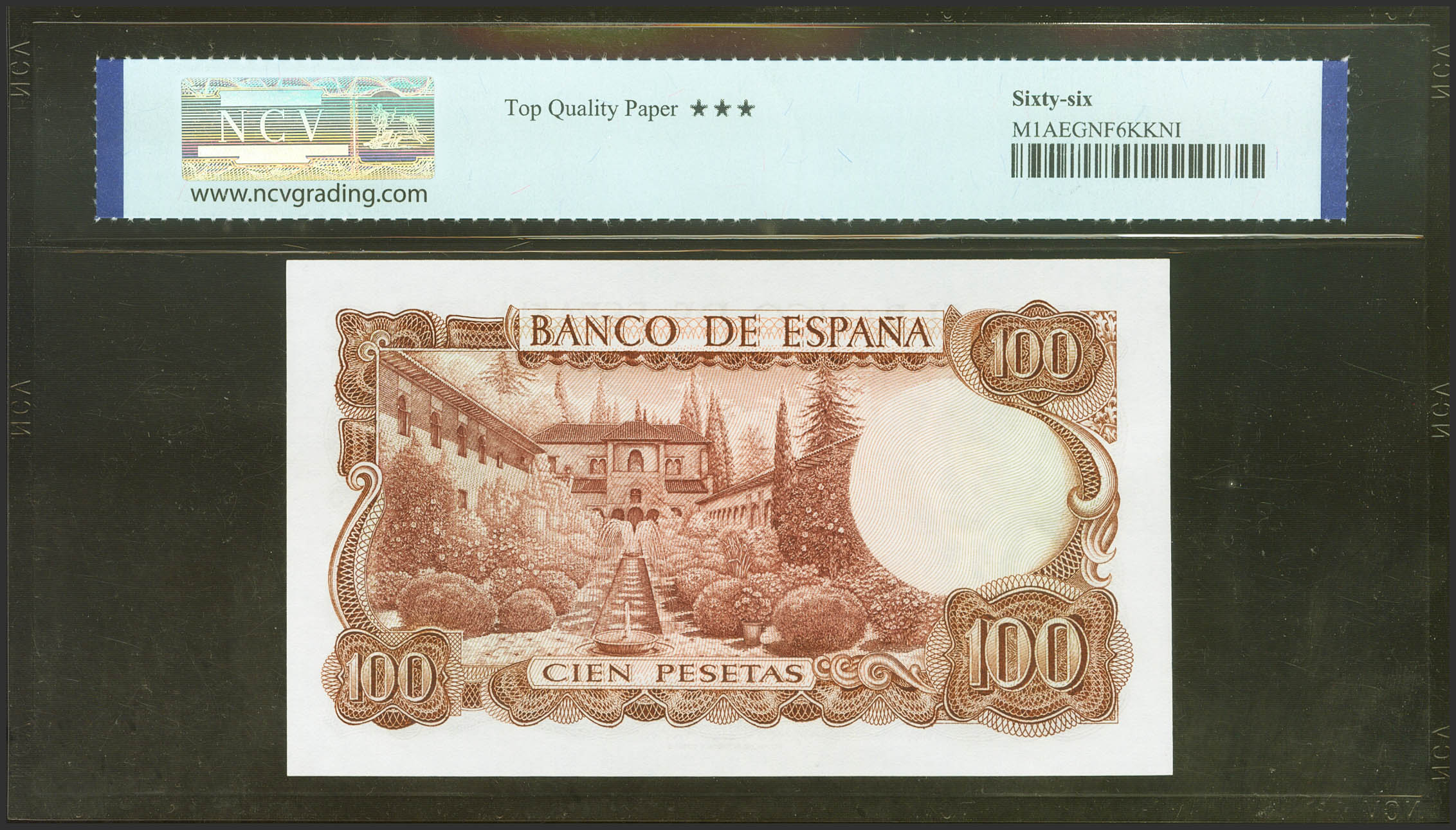 100 Pesetas. 17 de Noviembre de 1970. Serie especial 9A. (Edifil 2021: 472d, Pick: 152a*). Apresto original. SC. Encapsulado NCV66TQP.