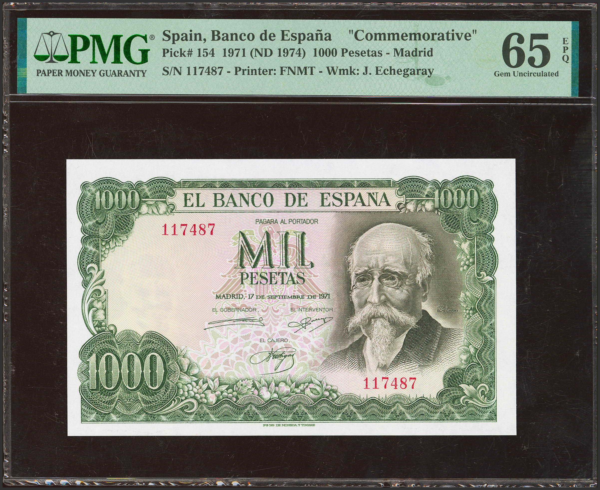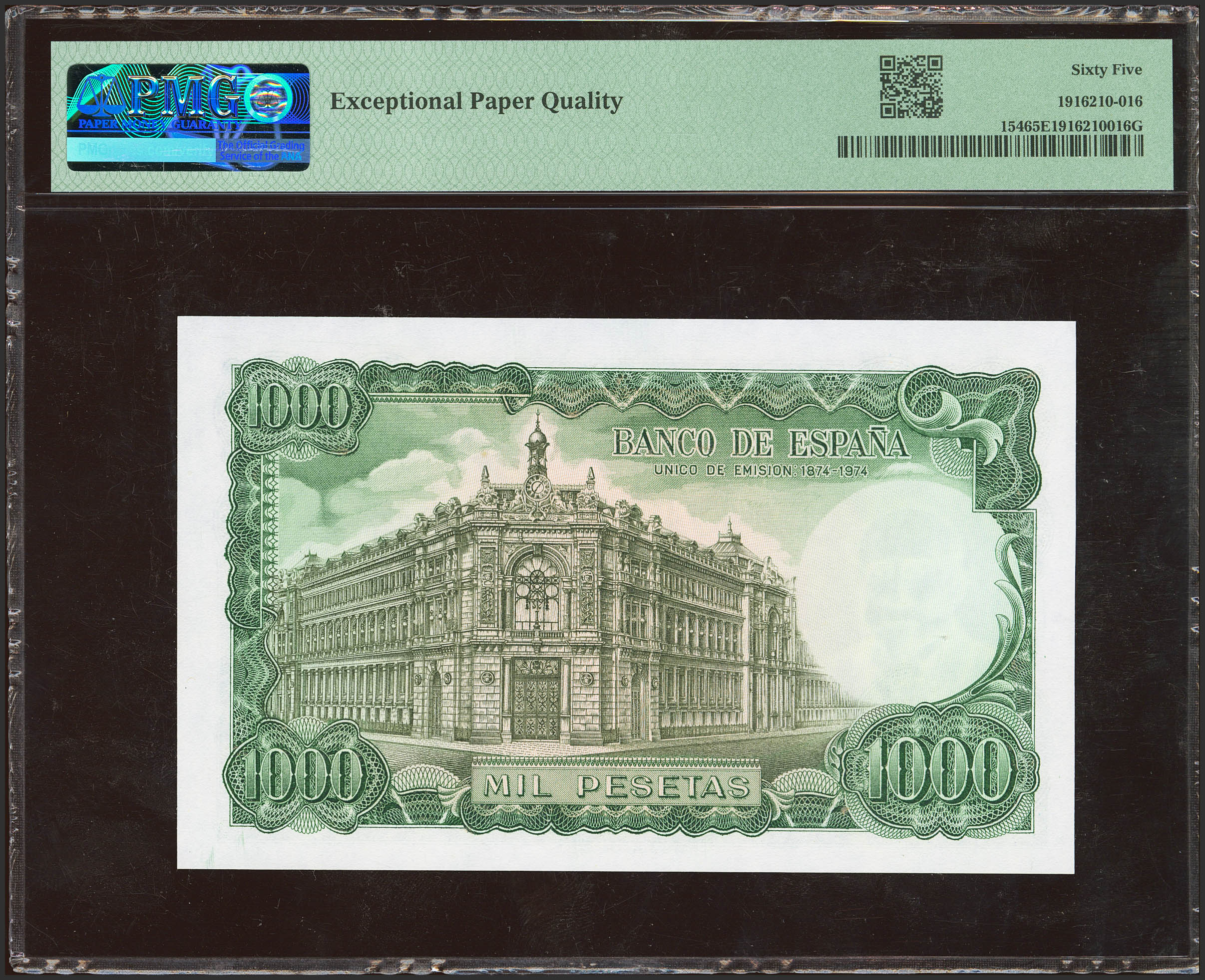 1000 Pesetas. 17 de Septiembre de 1971. Sin serie. (Edifil 2023: 474, Pick: 154). Inusual en esta calidad, apresto original. Encapsulado PMG65EPQ.