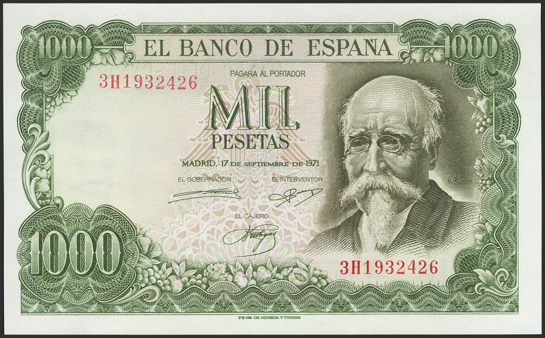 1000 Pesetas. 17 de Septiembre de 1971. Serie 3H. (Edifil 2023: 474c). Apresto original. SC.