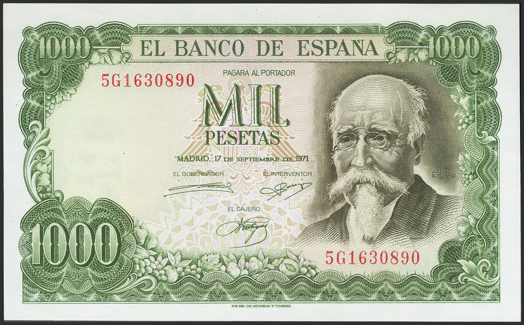 1000 Pesetas. 17 de Septiembre de 1971. Serie 5G. (Edifil 2023: 474c). Apresto original. SC.
