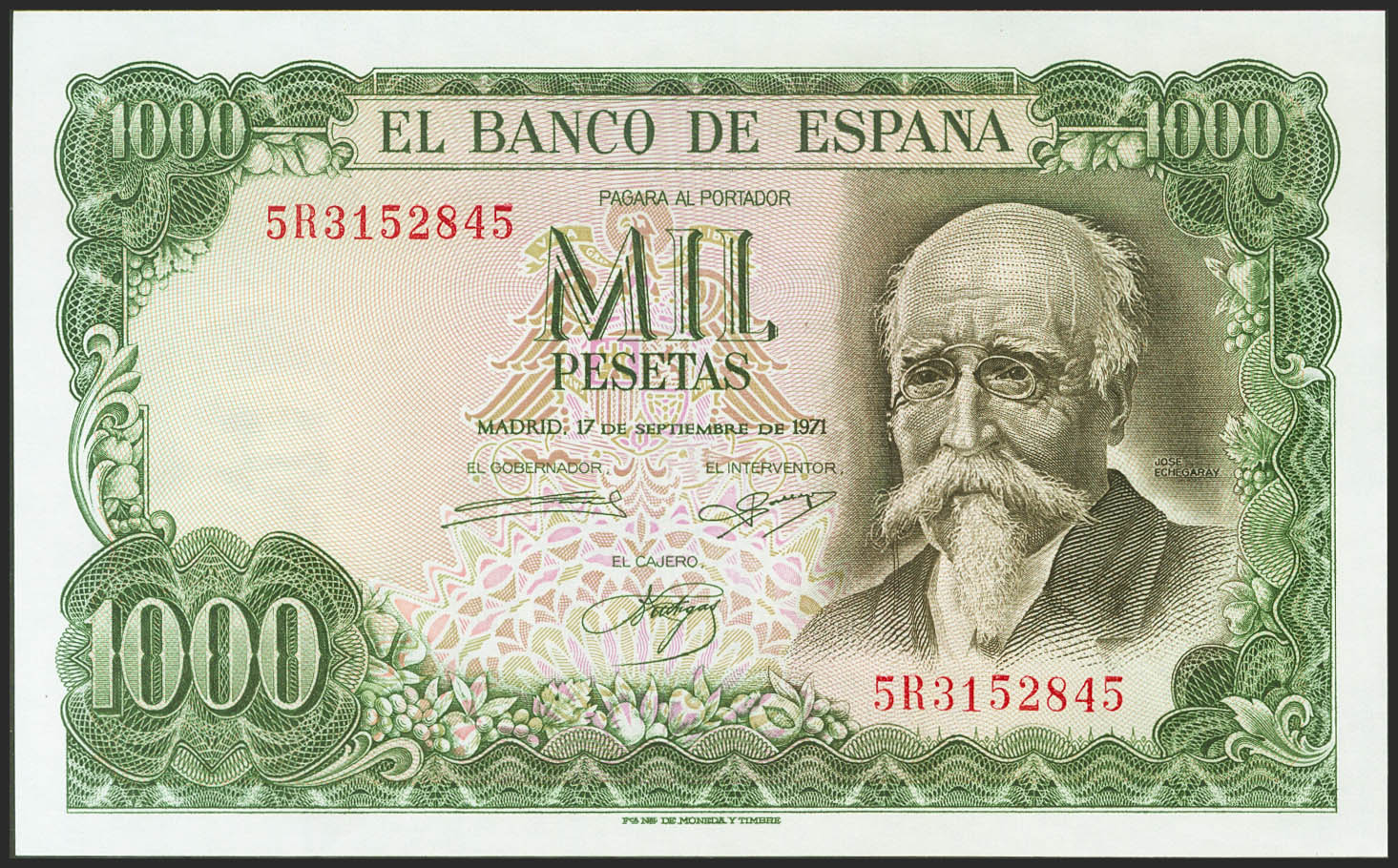 1000 Pesetas. 17 de Septiembre de 1971. Serie 5R. (Edifil 2021: 474c). Conserva todo su apresto original. SC.