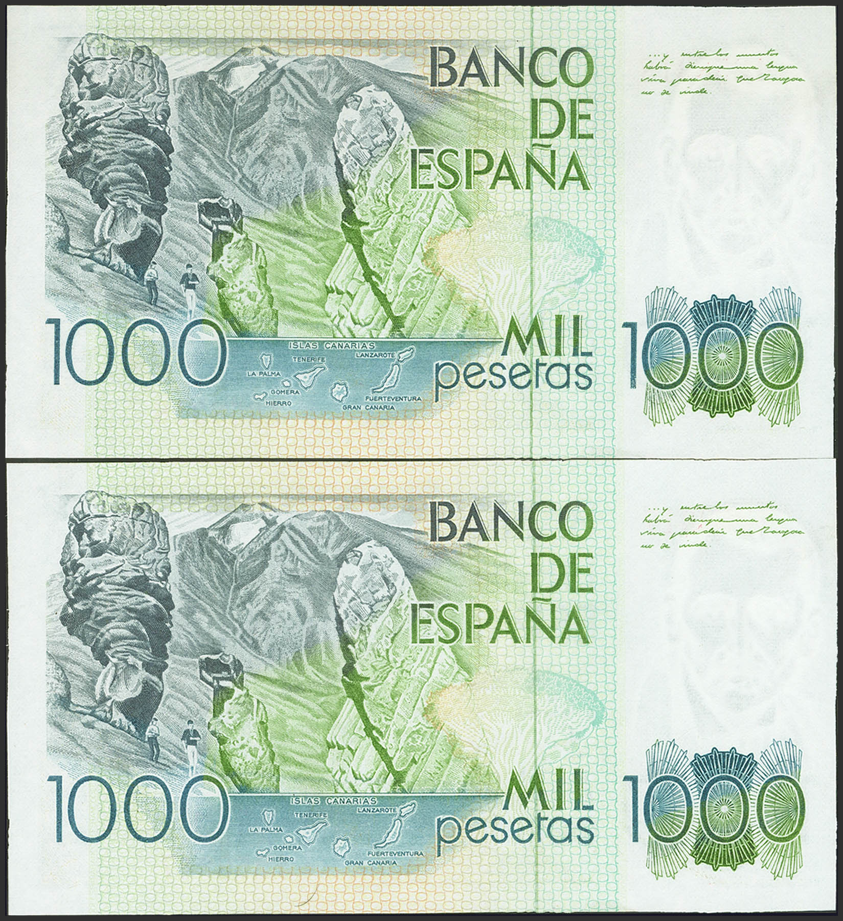 1000 Pesetas. 23 de Octubre de 1979. Pareja correlativa. Sin serie. (Edifil 2023: 477). SC.