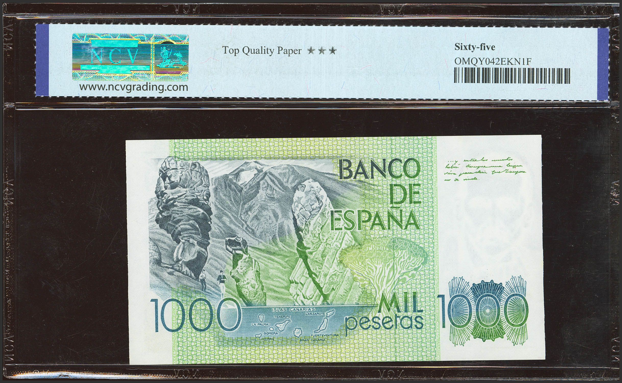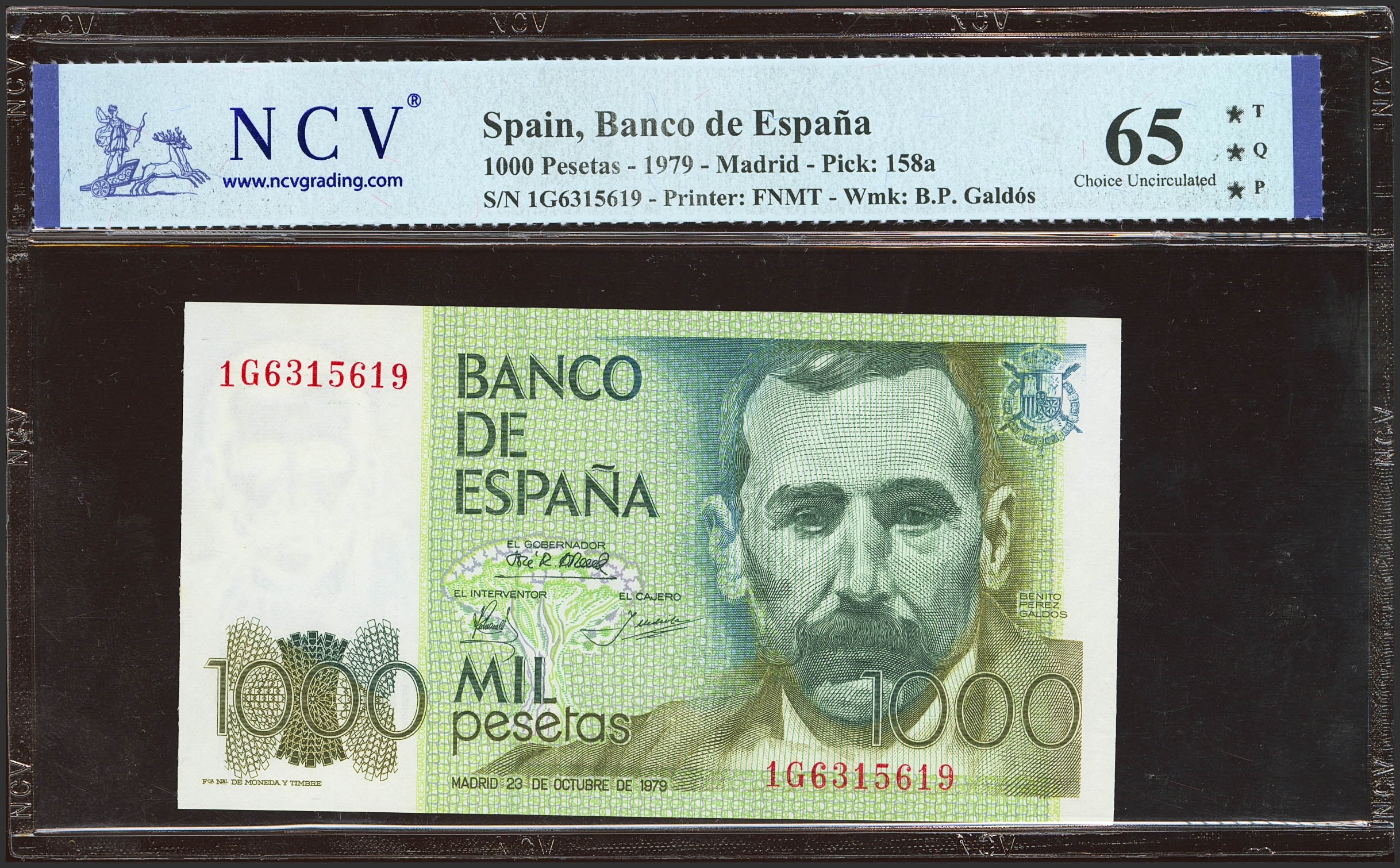 1000 Pesetas. 23 de Octubre de 1979. Serie 1G. (Edifil 2023: 477a, Pick: 158a). SC. Encapsulado NCV65TQP.