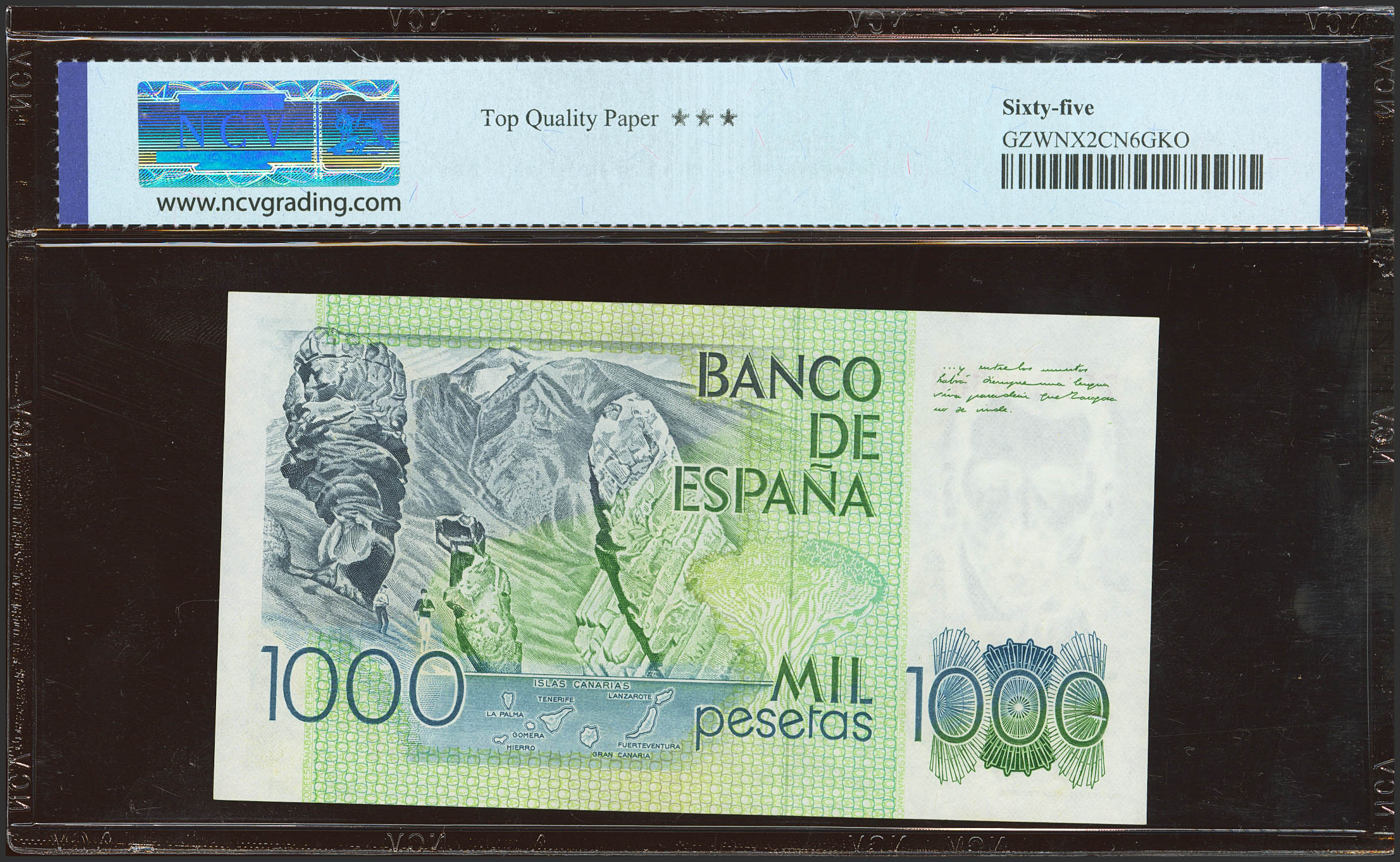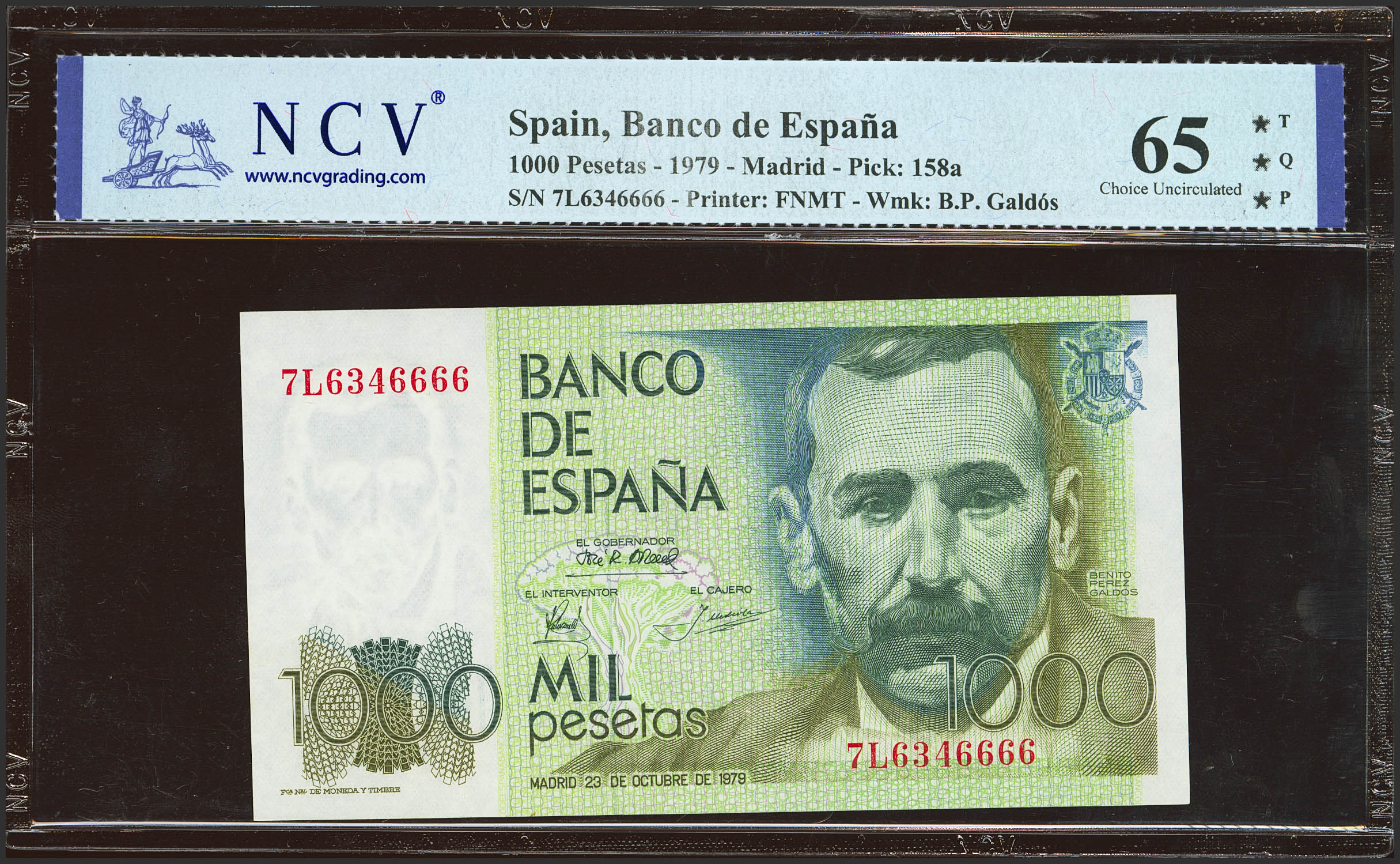 1000 Pesetas. 23 de Octubre de 1979. Serie 7L. (Edifil 2023: 477a, Pick: 158a). SC. Encapsulado NCV65TQP.