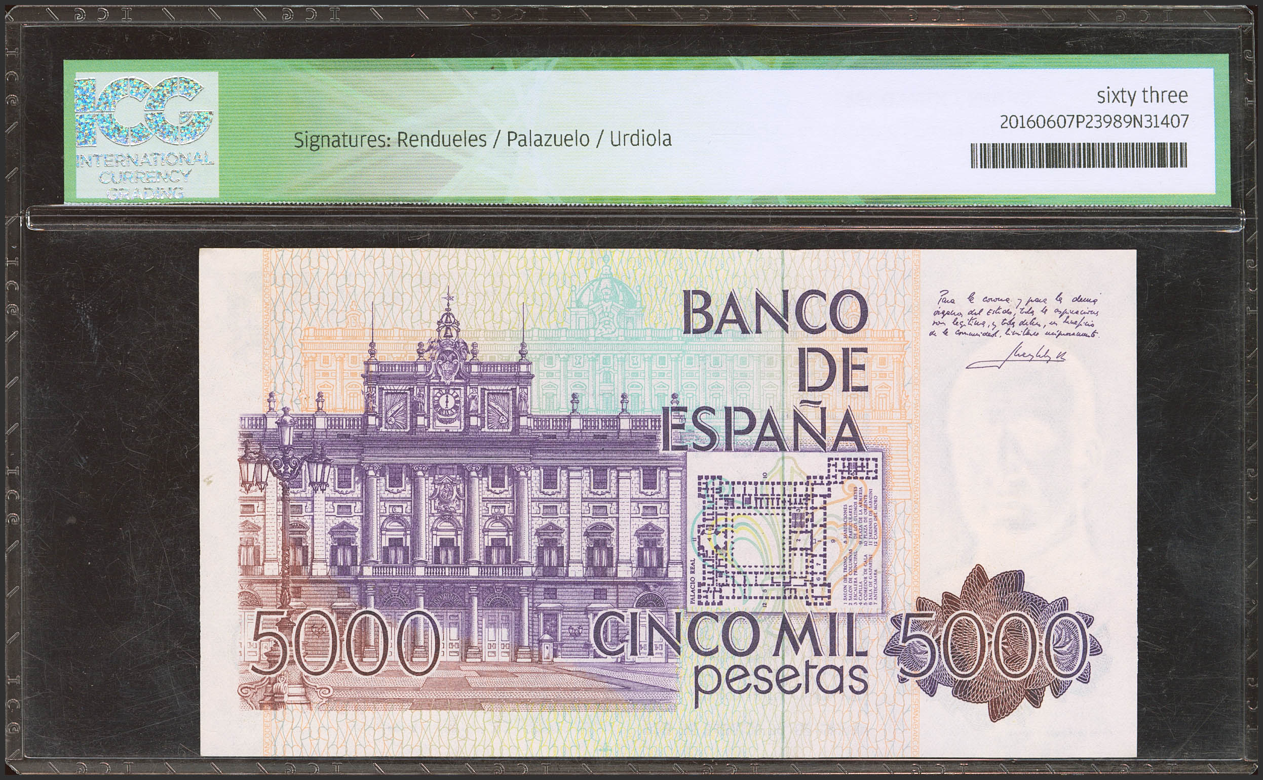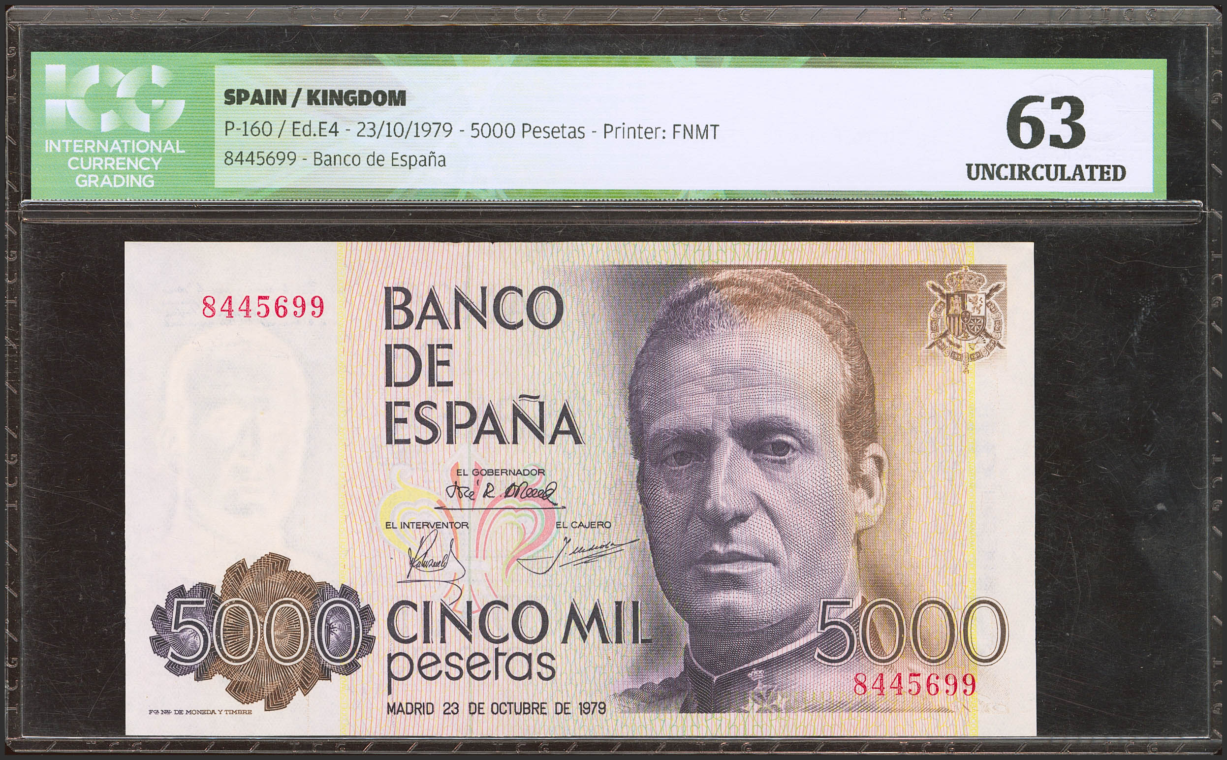 5000 Pesetas. 23 de Octubre de 1979. Sin serie. (Edifil 2023: 478, Pick: 160). SC. Encapsulado ICG63.