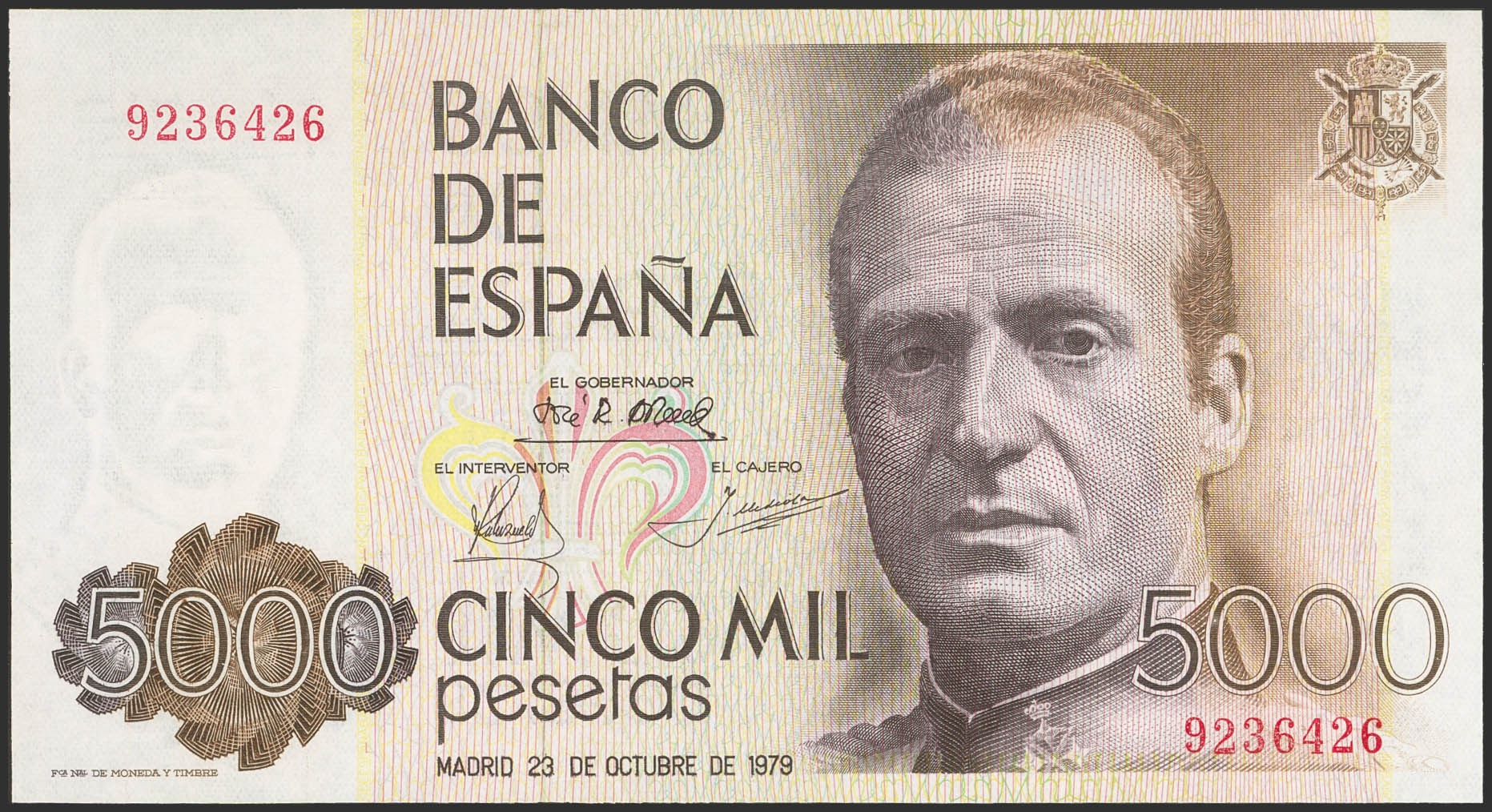 5000 Pesetas. 23 de Octubre de 1979. Sin serie. (Edifil 2021: 478). SC.
