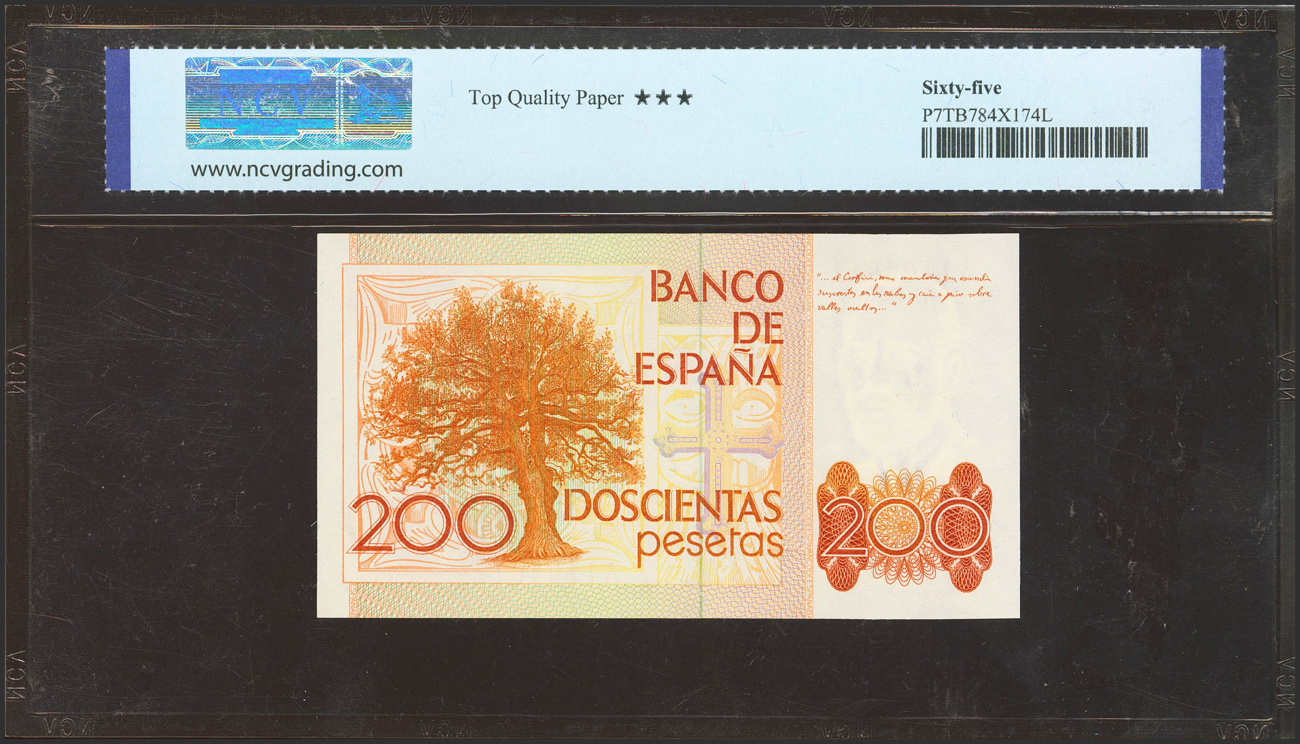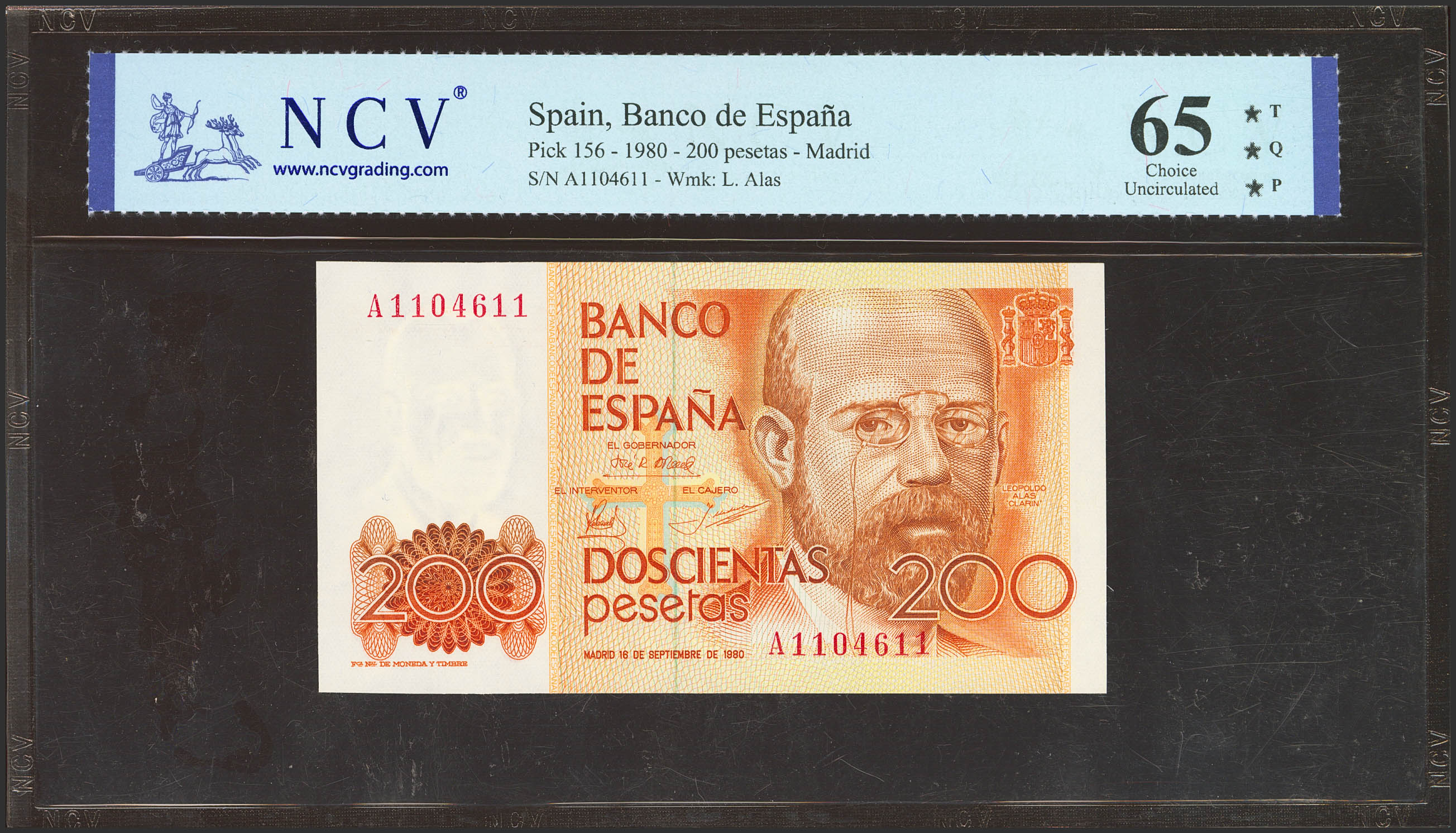 200 Pesetas. 16 de Septiembre de 1980. Serie A. (Edifil 2023: 480a, Pick: 156). SC. Encapsulado NCV65TQP.