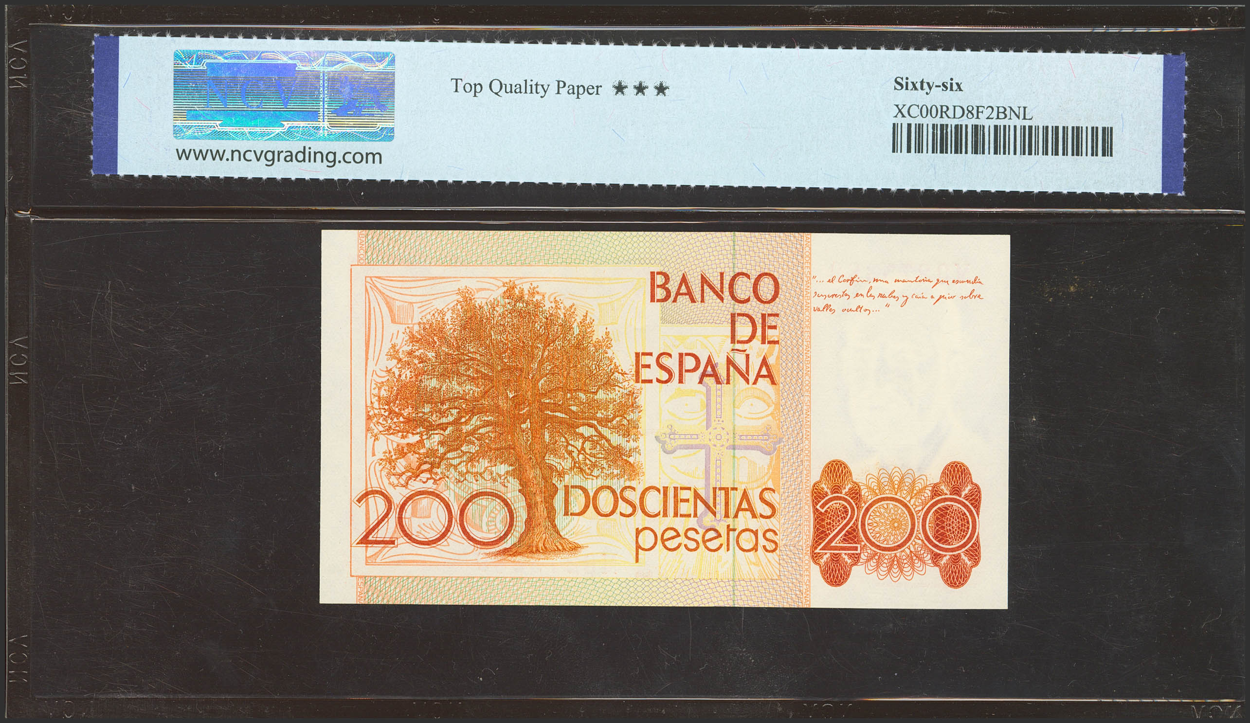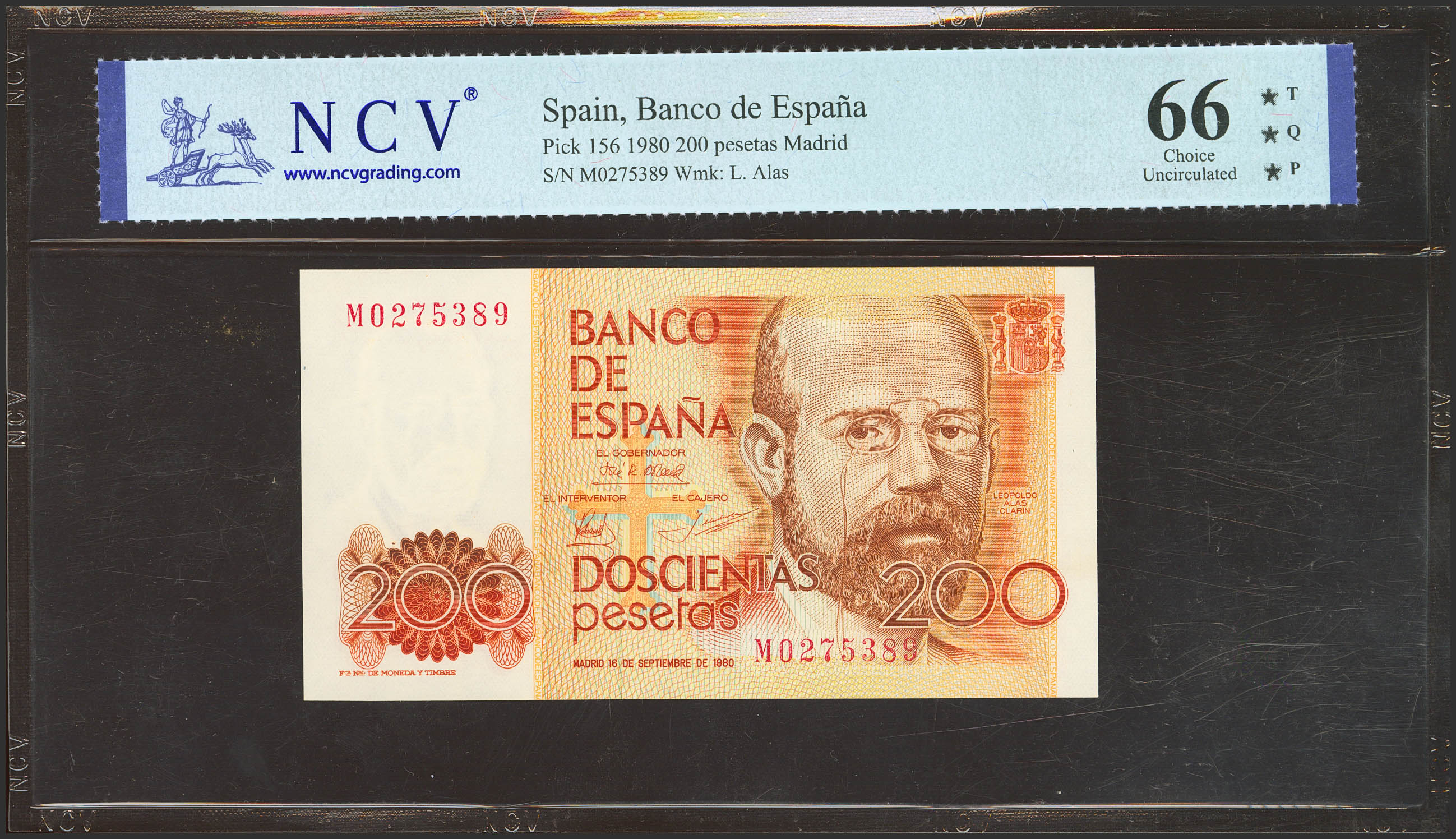 200 Pesetas. 16 de Septiembre de 1980. Serie M, última serie emitida. (Edifil 2023: 480a, Pick: 156). SC. Encapsulado NCV66TQP.