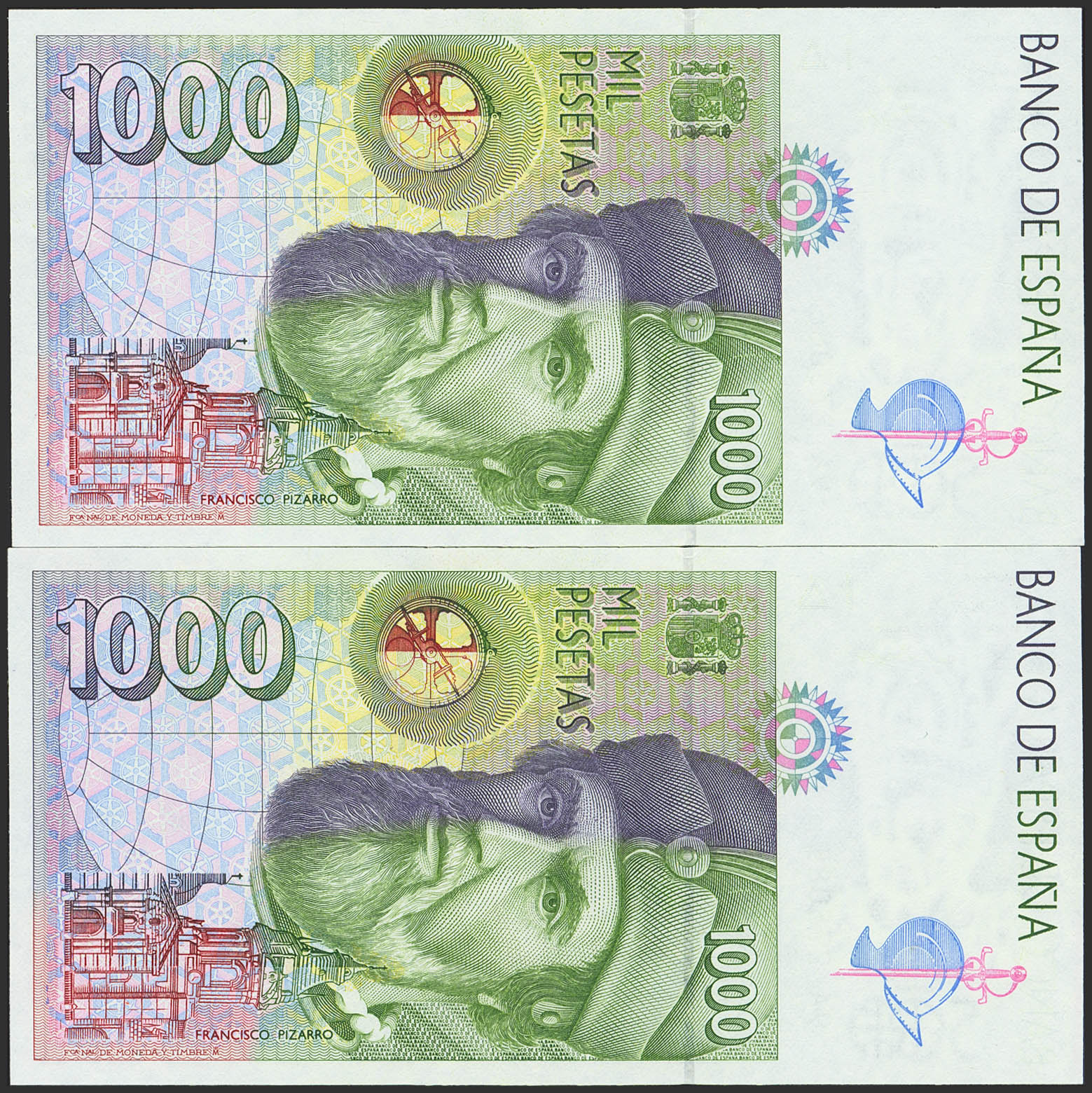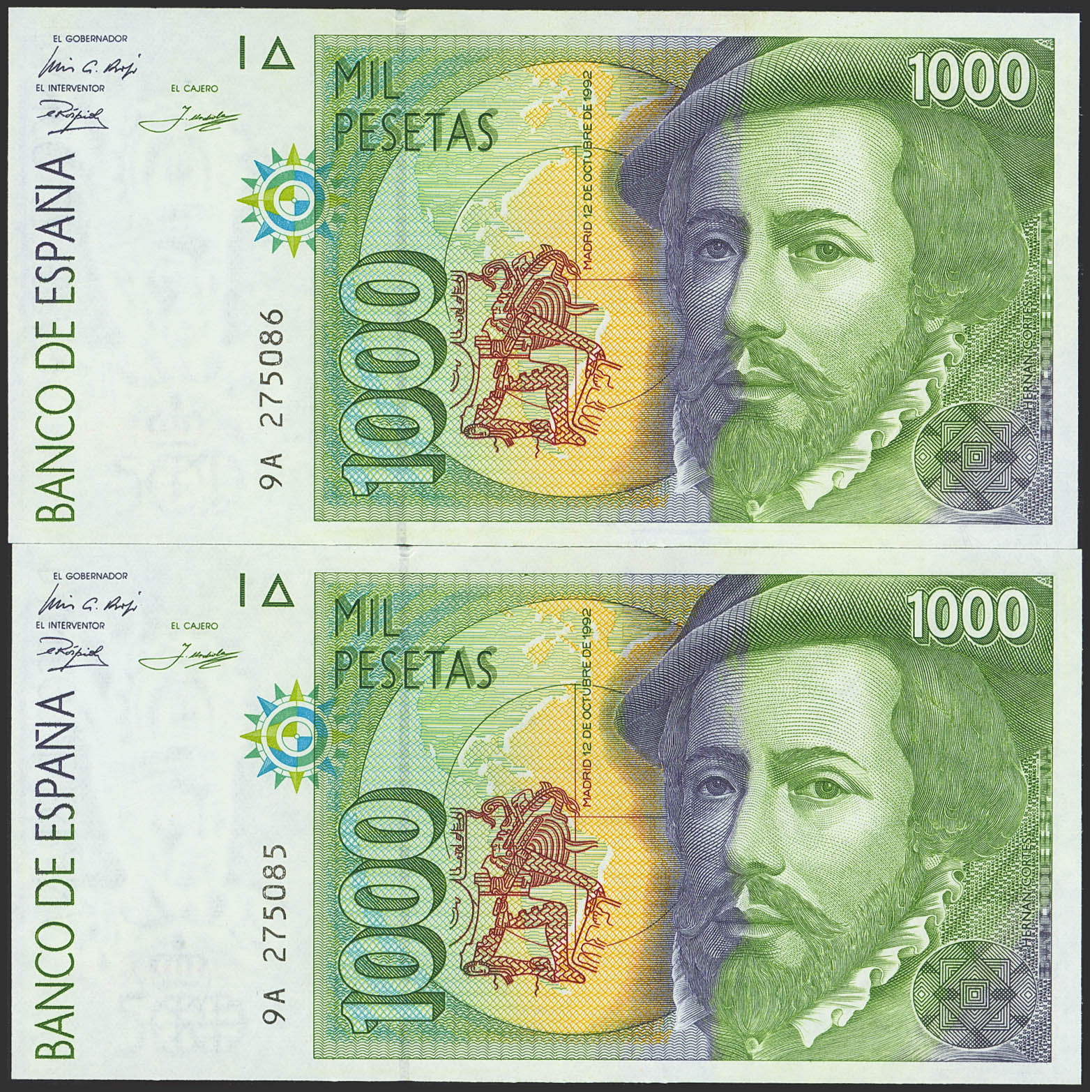 1000 Pesetas. 12 de Octubre de 1992. Pareja correlativa. Serie especial 9A. (Edifil 2023: 483c). SC.