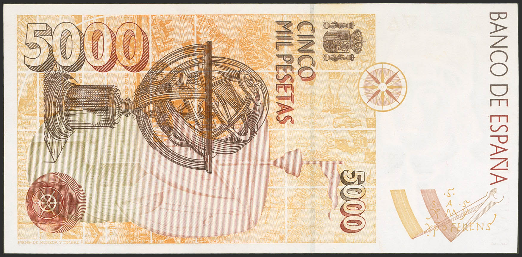 5000 Pesetas. 12 de Octubre de 1992. Serie especial 9A. (Edifil 2021: 484b). Manchita del tiempo. EBC+.