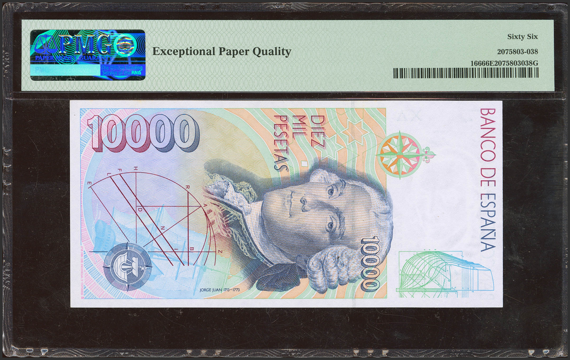 10000 Pesetas. 12 de Octubre de 1992. Sin serie. (Edifil 2023: 485, Pick: 166). Apresto original. SC. Encapsulado PMG66EPQ.