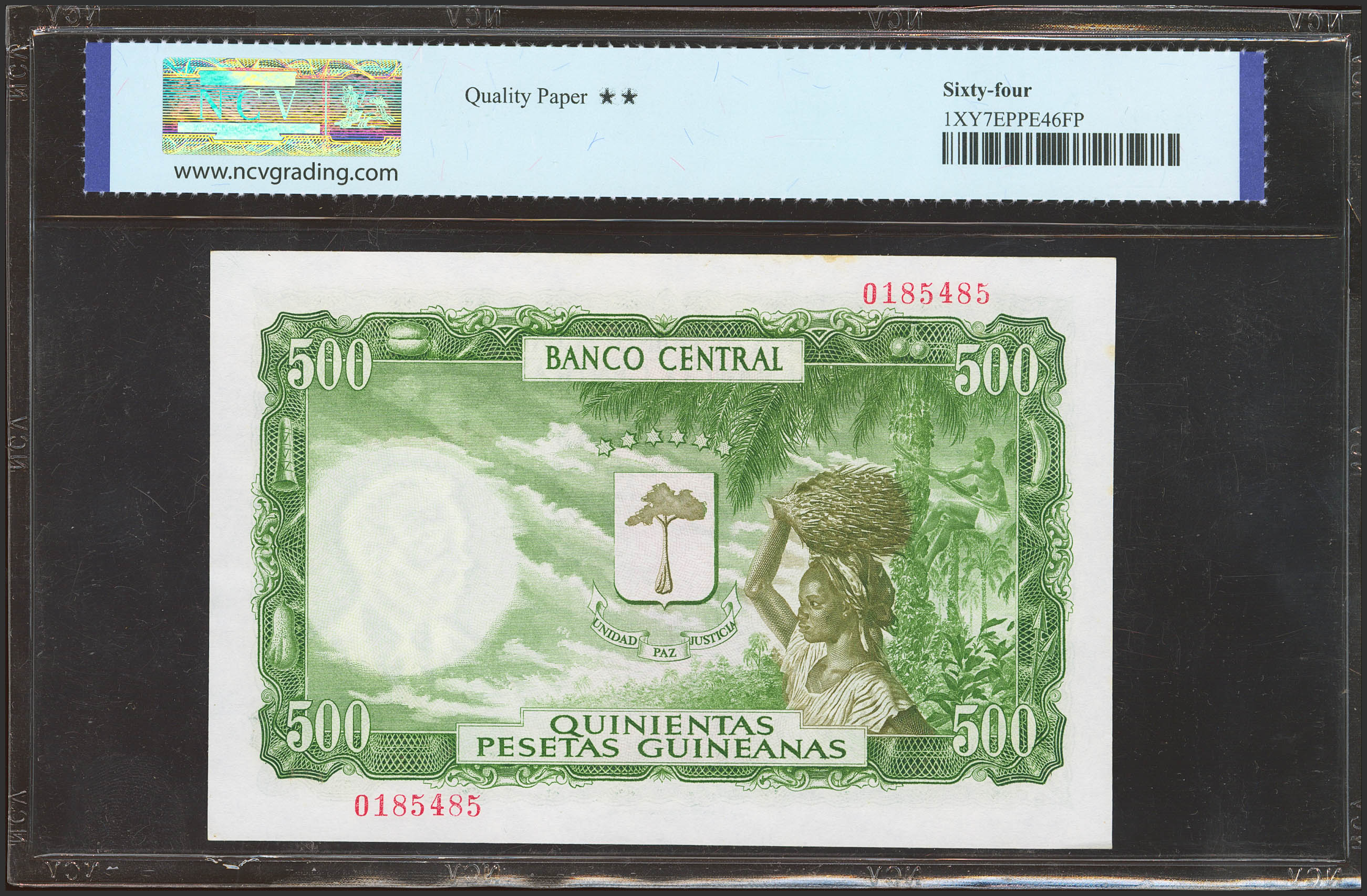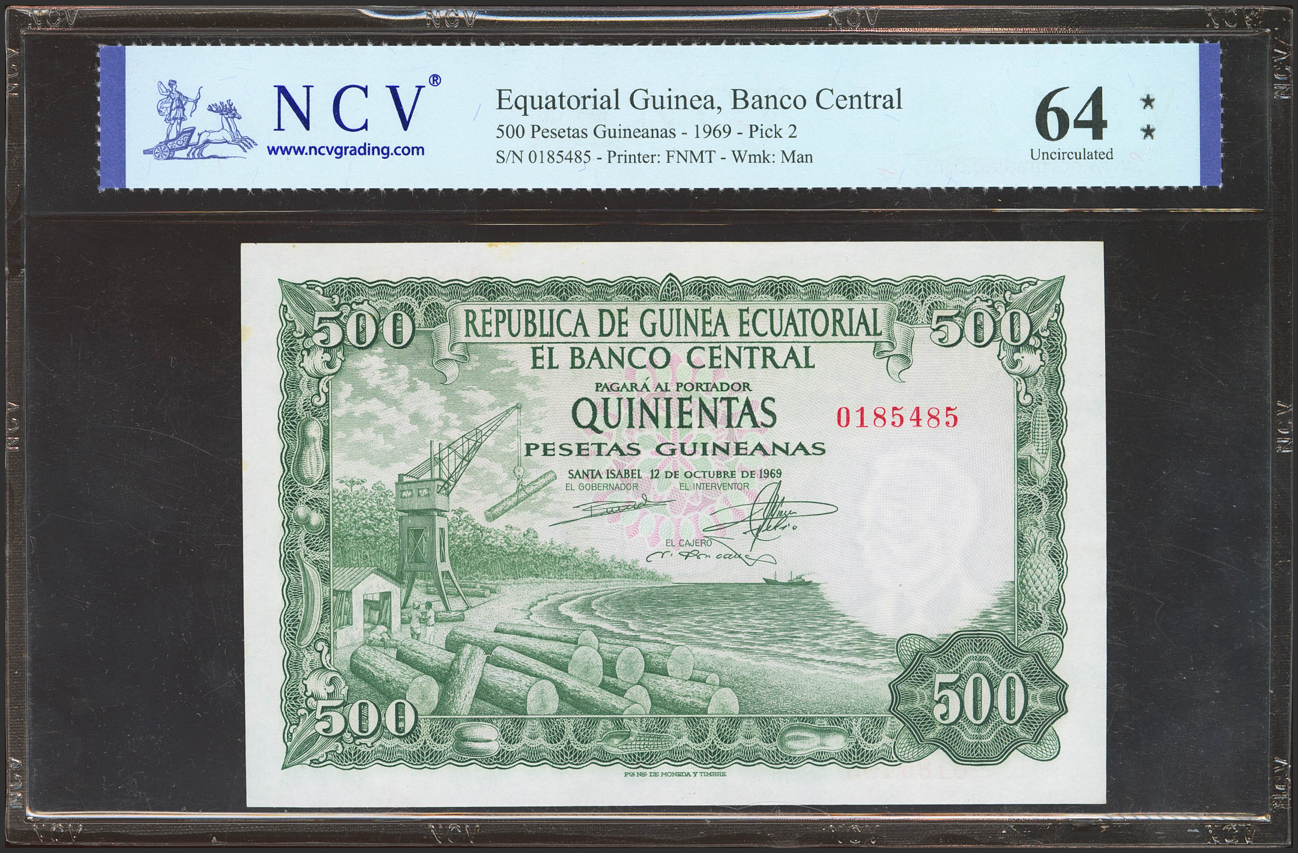 GUINEA ECUATORIAL. 500 Pesetas. 12 de Octubre de 1969. Sin serie. (Pick: 2). SC. Encapsulado NCV64.