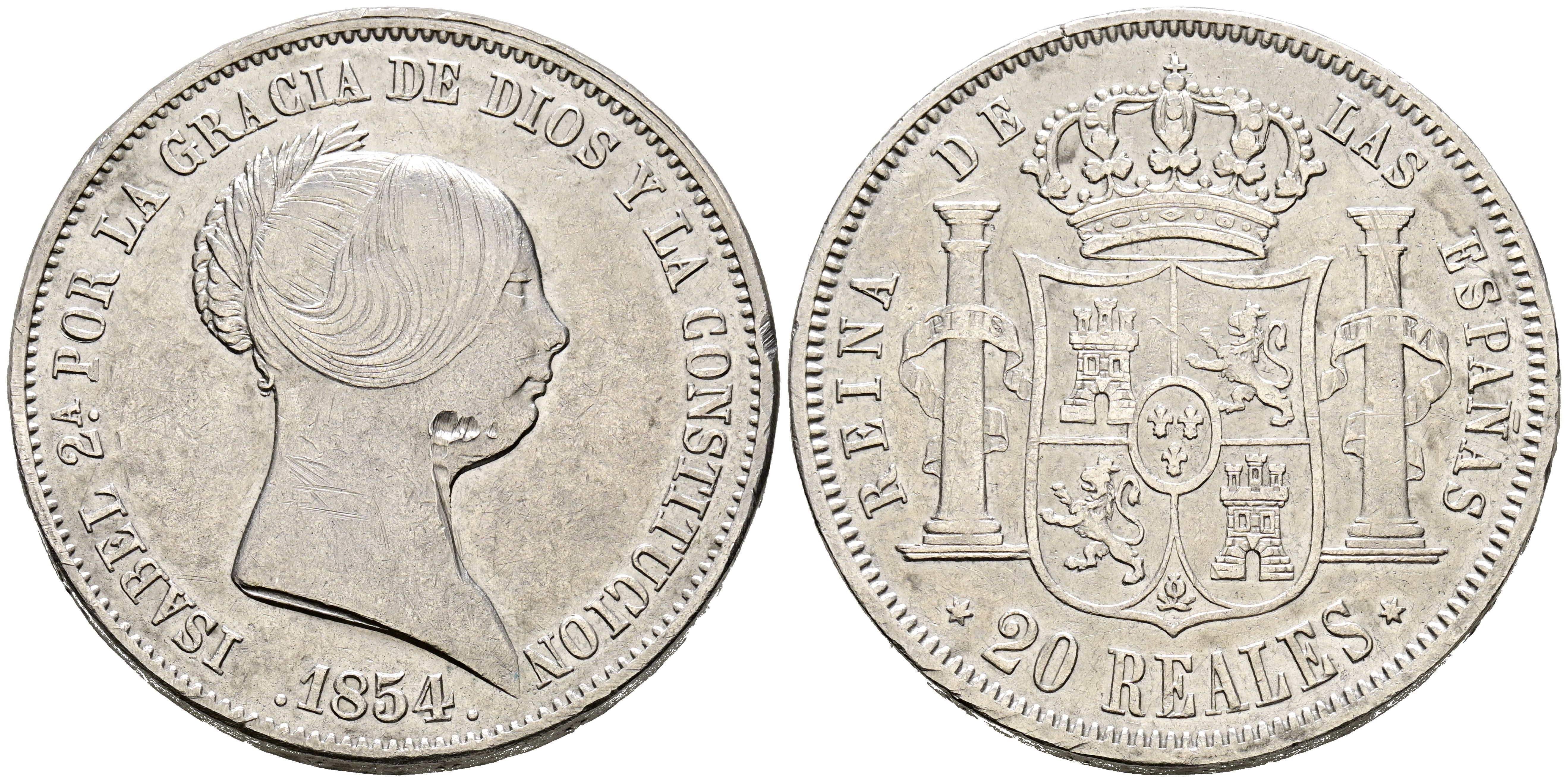 ISABEL II (1833-1868). 20 Reales. (Ar. 25,61g/37mm). 1854. Madrid. (Cal-2019-596). MBC/MBC+. Golpe en anverso.