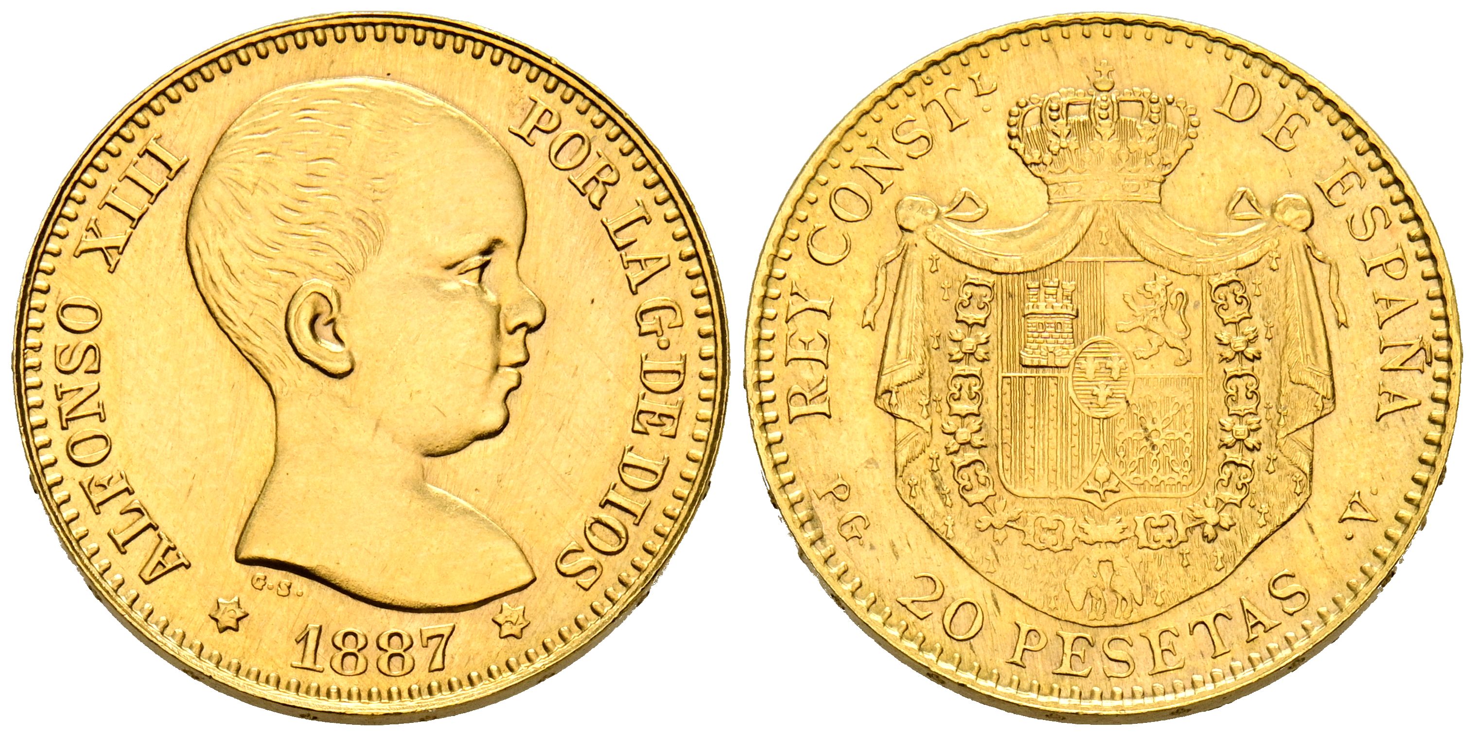 ALFONSO XIII (1885-1931). 20 Pesetas. (Au. 6,46g/21mm). 1887 *19-62. Madrid PGV. (Cal-2019-171-Estado Español). Reacuñación oficial. EBC+. Leves rayitas. Tirada de sólo 11 mil unidades.