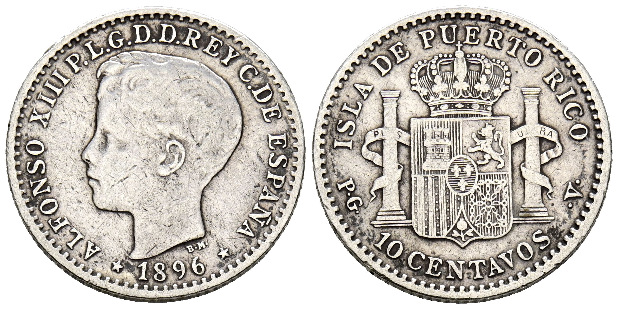 ALFONSO XIII (1885-1931). 10 Centavos. (Ar. 2,44g/18mm). 1896. Puerto Rico PGV. (Cal-2019-125). MBC.