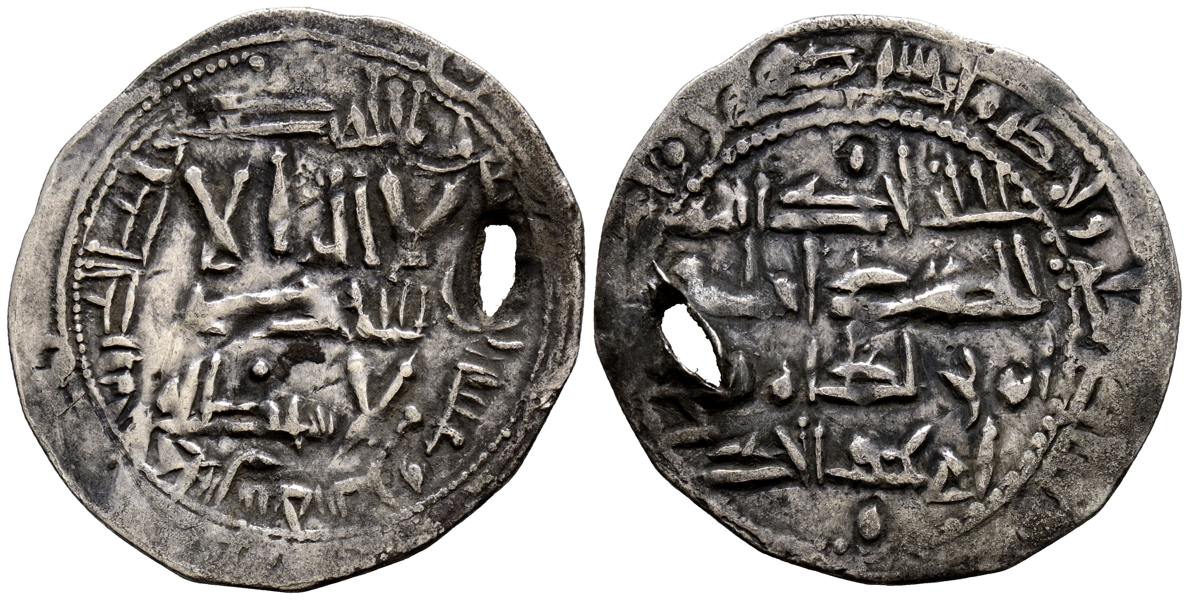 EMIRATO DEPENDIENTE DE CÓRDOBA. 'Abd al-Rahman II. Dirham. (Ar. 2,43g/27mm). 227H. al-Ándalus / الاندلس. (Vives 181; Frochoso 199.8). MBC- Dos perforaciones.
