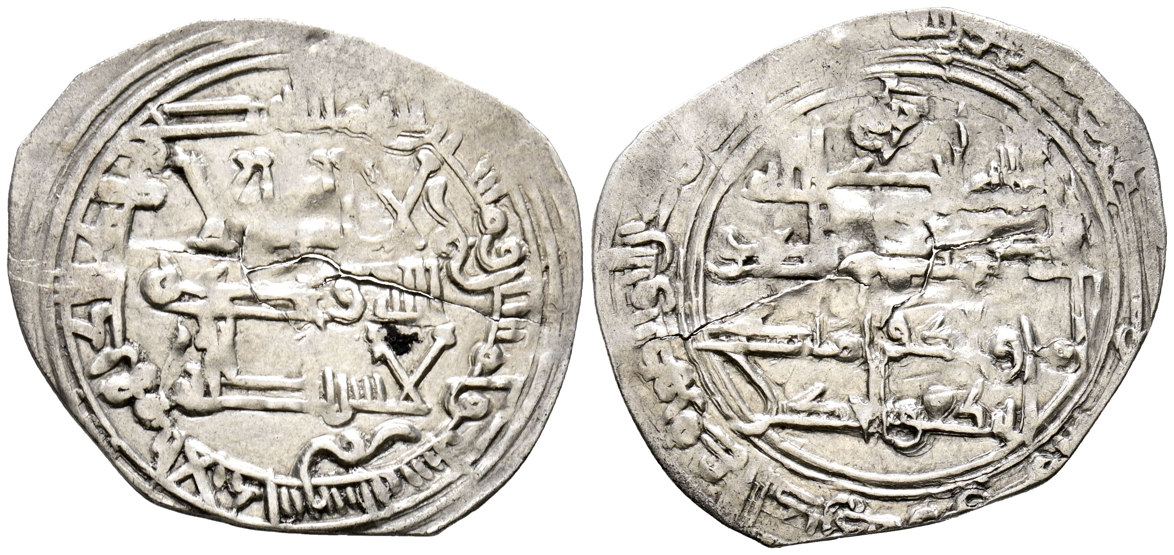 EMIRATO DEPENDIENTE DE CÓRDOBA. Muhammad I. Dirham. (Ar. 2,57g/29mm). 256H. al-Ándalus / الاندلس. (Vives 274; Frochoso 256.7). MBC. Grieta central.