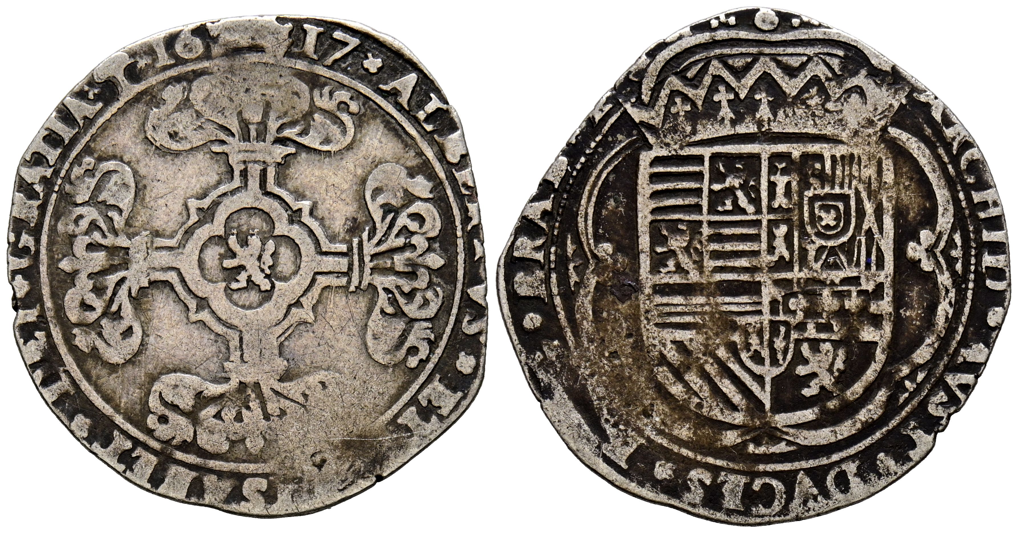 ALBERTO E ISABEL (1598-1621). 3 Patard. (Ar. 2,35g/26mm). 1617. Bois de Luc. (Vicenti 208). MBC. Rara.