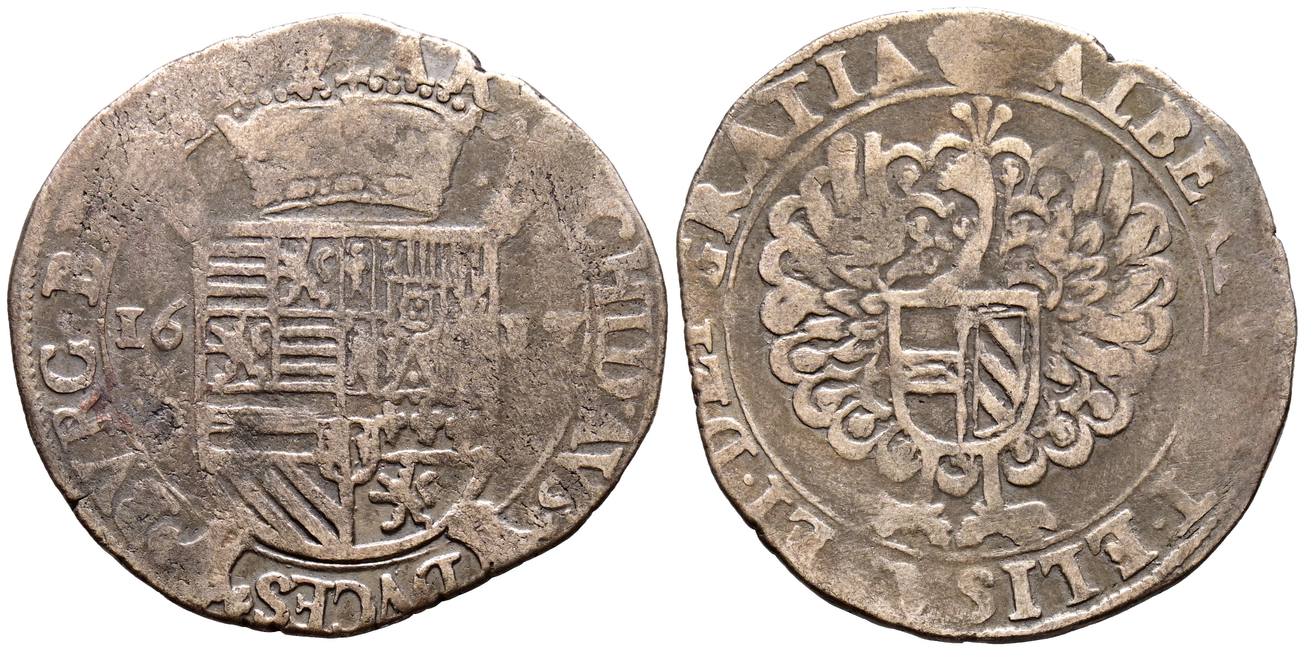 ALBERTO E ISABEL (1598-1621). Escalín. (Ar. 4,63g/28mm). 1617. Bois de Luc. (Vicenti 239). MBC-. Rara.