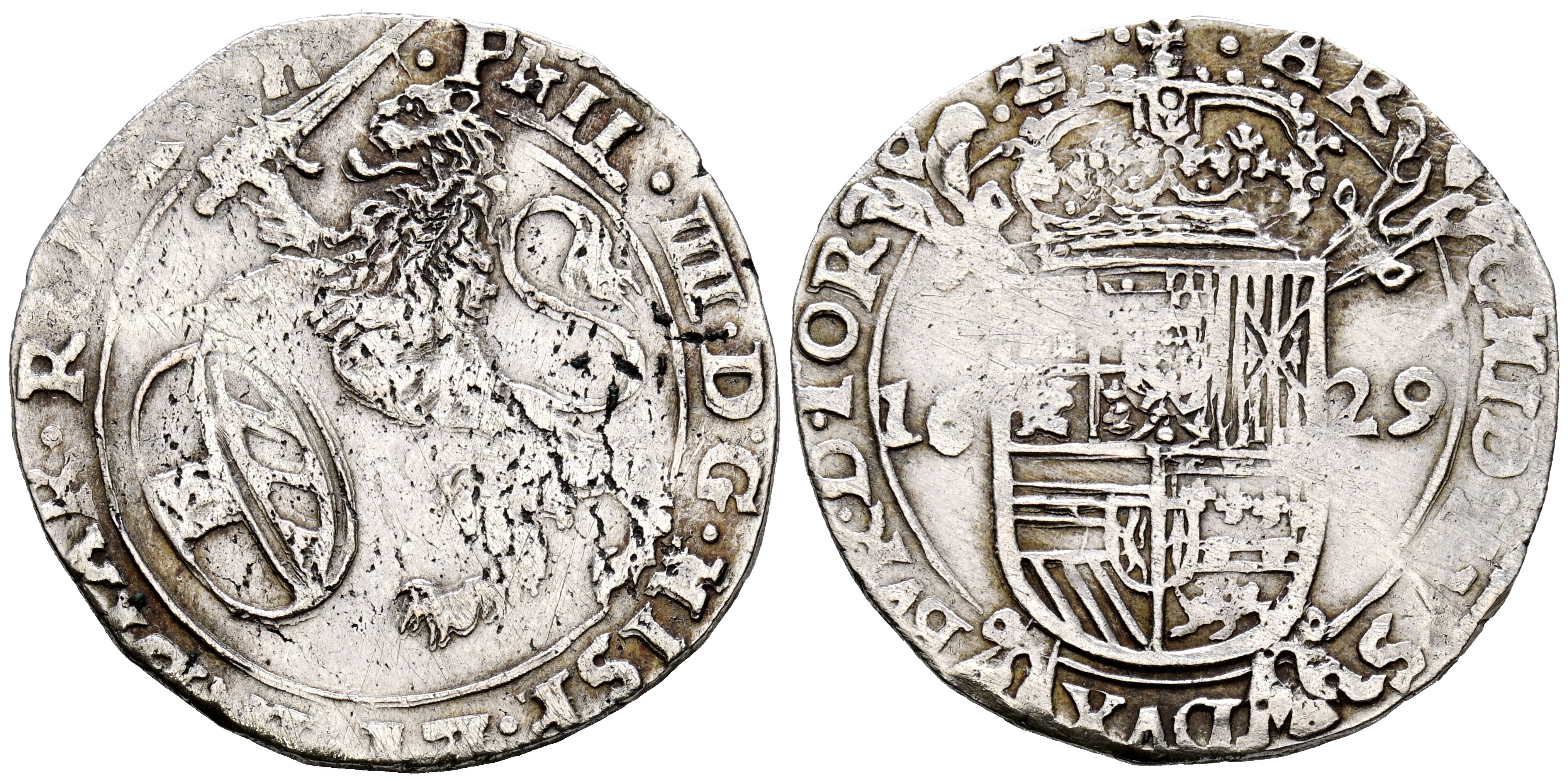 FELIPE IV (1621-1665). Escalín. (Ar. 5,22g/29mm). 1629. Tournai. (Vicenti 632). MBC+. Limpiada.