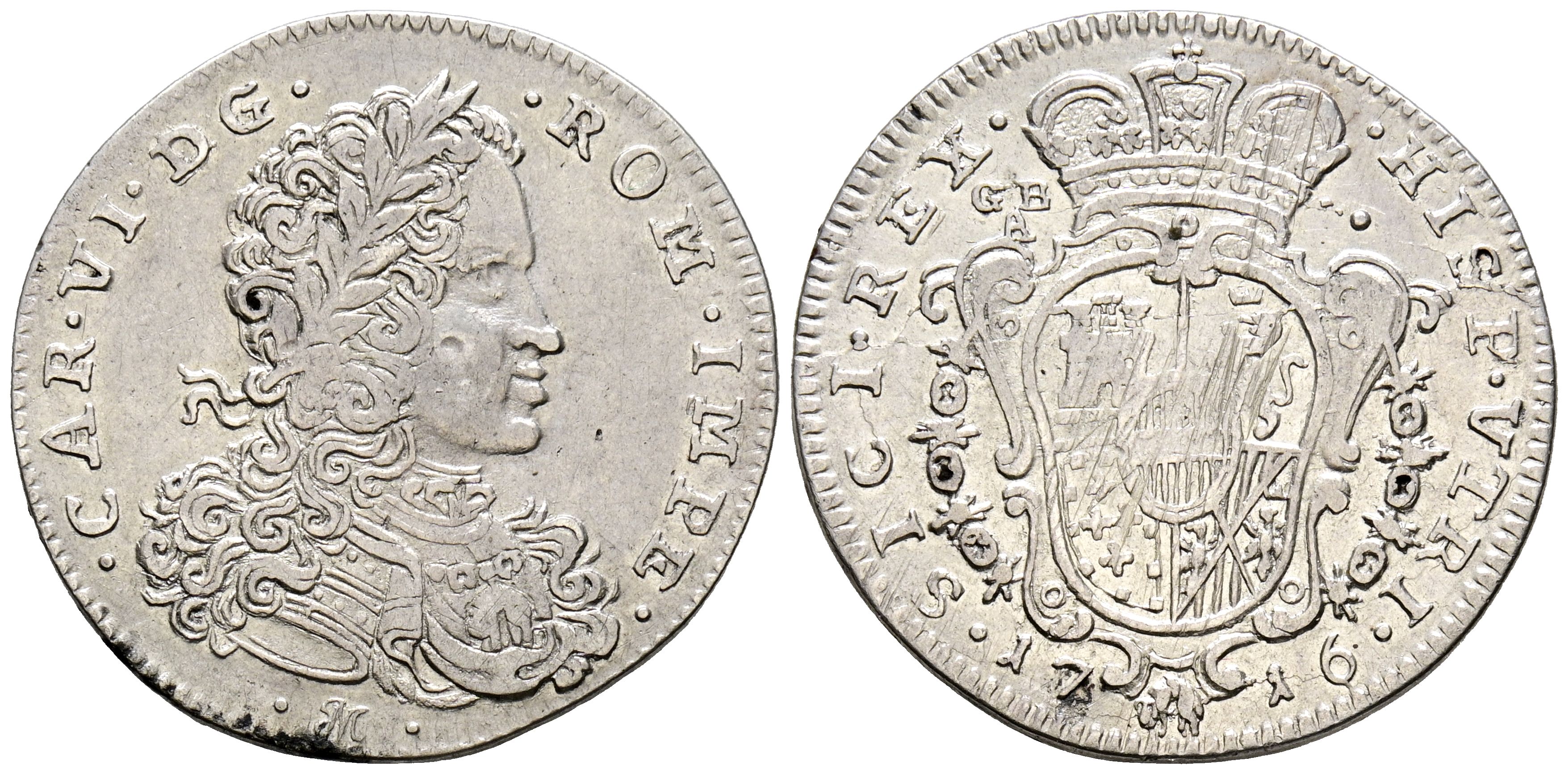 CARLOS III, El Pretendiente (1700-1714). 1 Tari. (Ar. 4,25g/25mm). 1716. Nápoles. Con el título de Emperador de Austria y Rey de España. (MIR-324/2). EBC-. Rayitas en reverso. Excelente ejemplar.