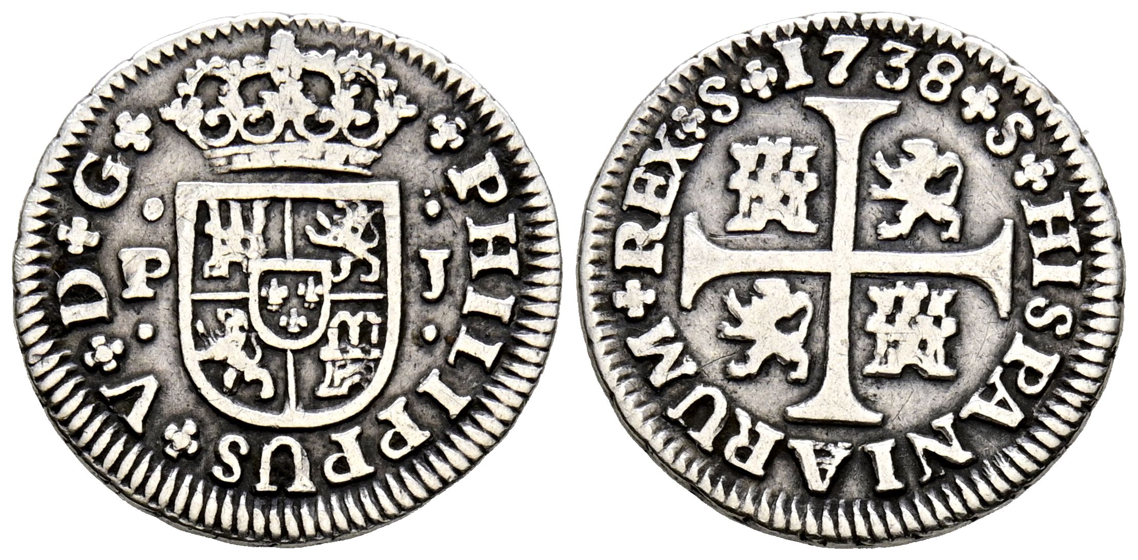 FELIPE V (1700-1746). 1/2 Real. (Ar. 1,40g/16mm). 1738. Sevilla PJ. (Cal-2019-345). MBC+.