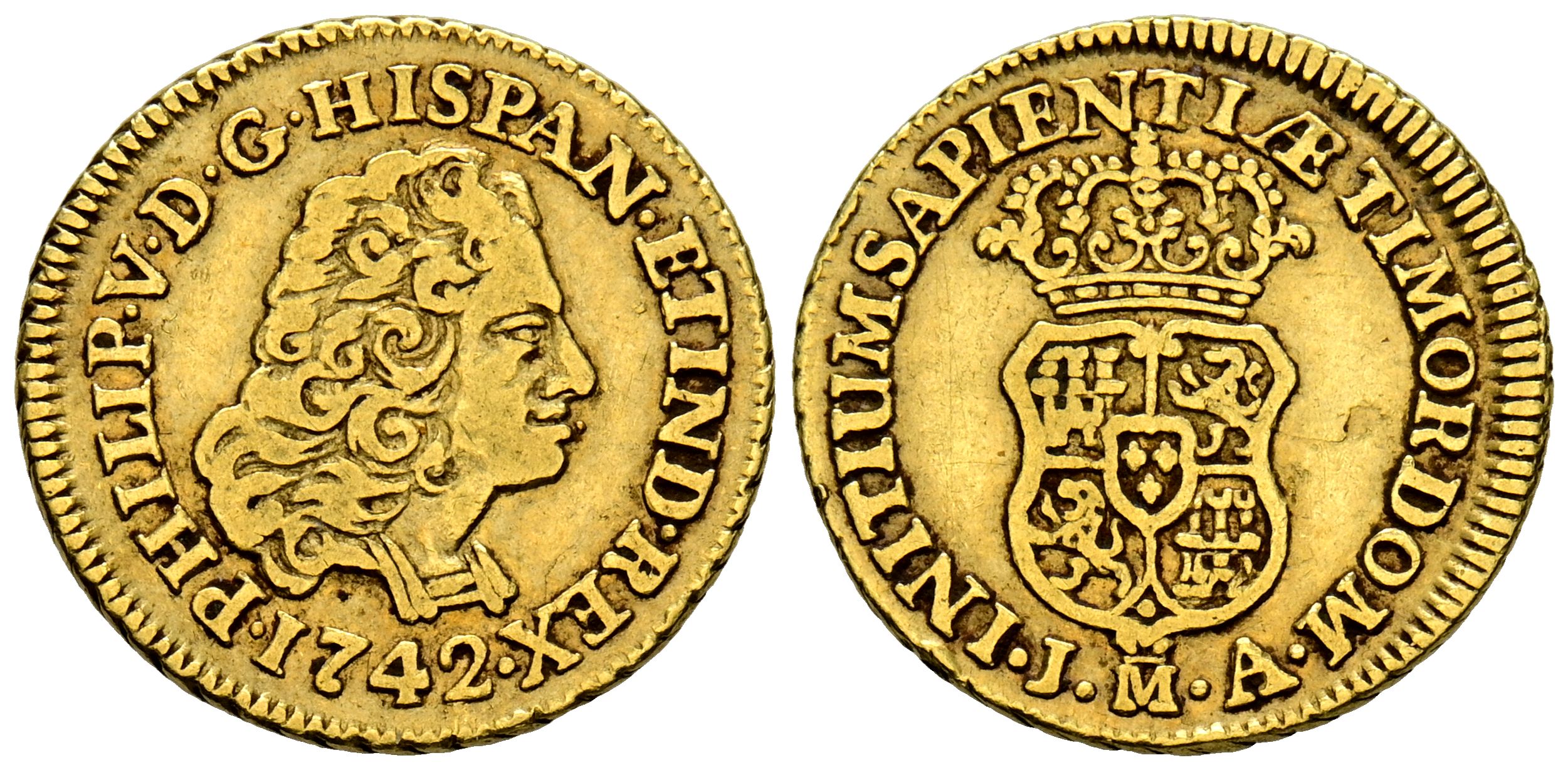 FELIPE V (1700-1746). 1 Escudo. (Au. 3,32g/17mm). 1742. Madrid JA. (Cal-2019-1722). MBC.